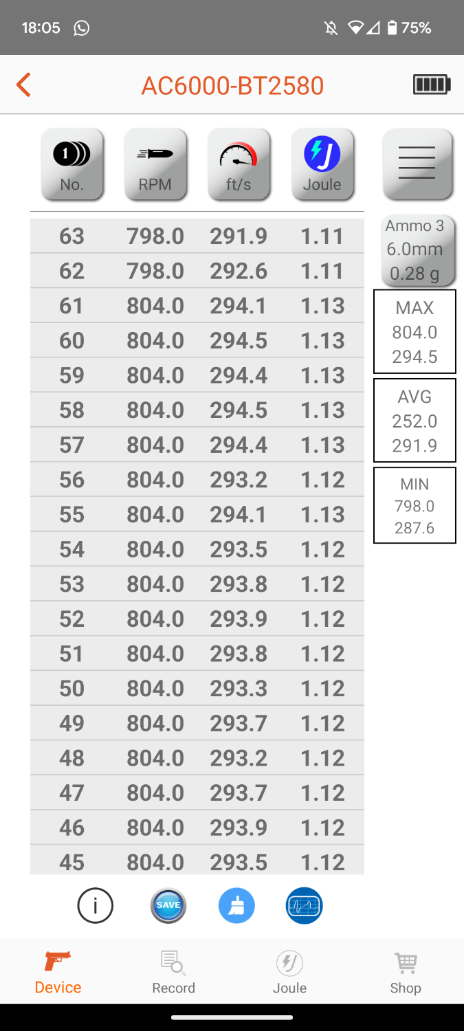 Firing consistently: 293-294fps on 0.28g BB's (1.12-1.13 Joules)