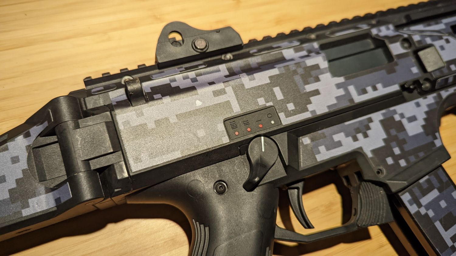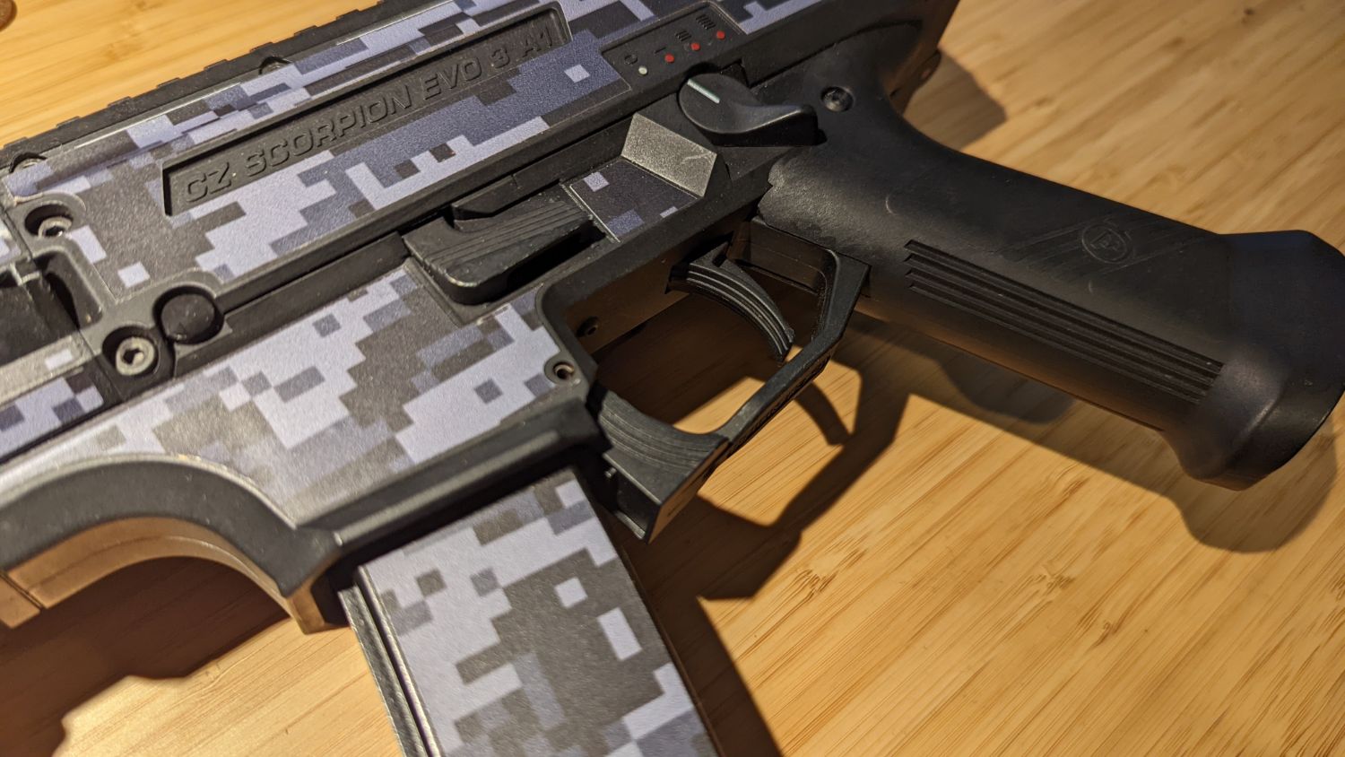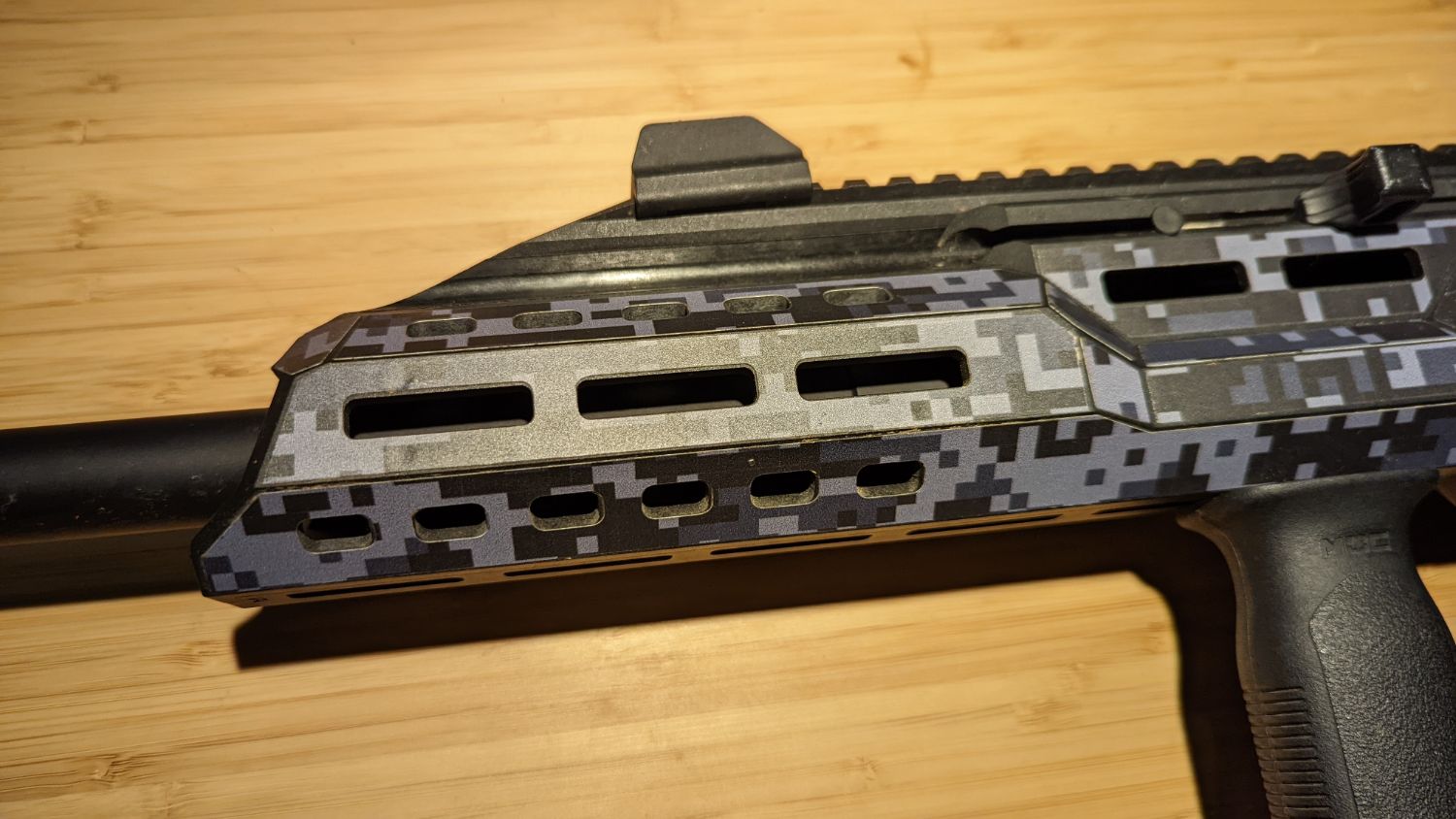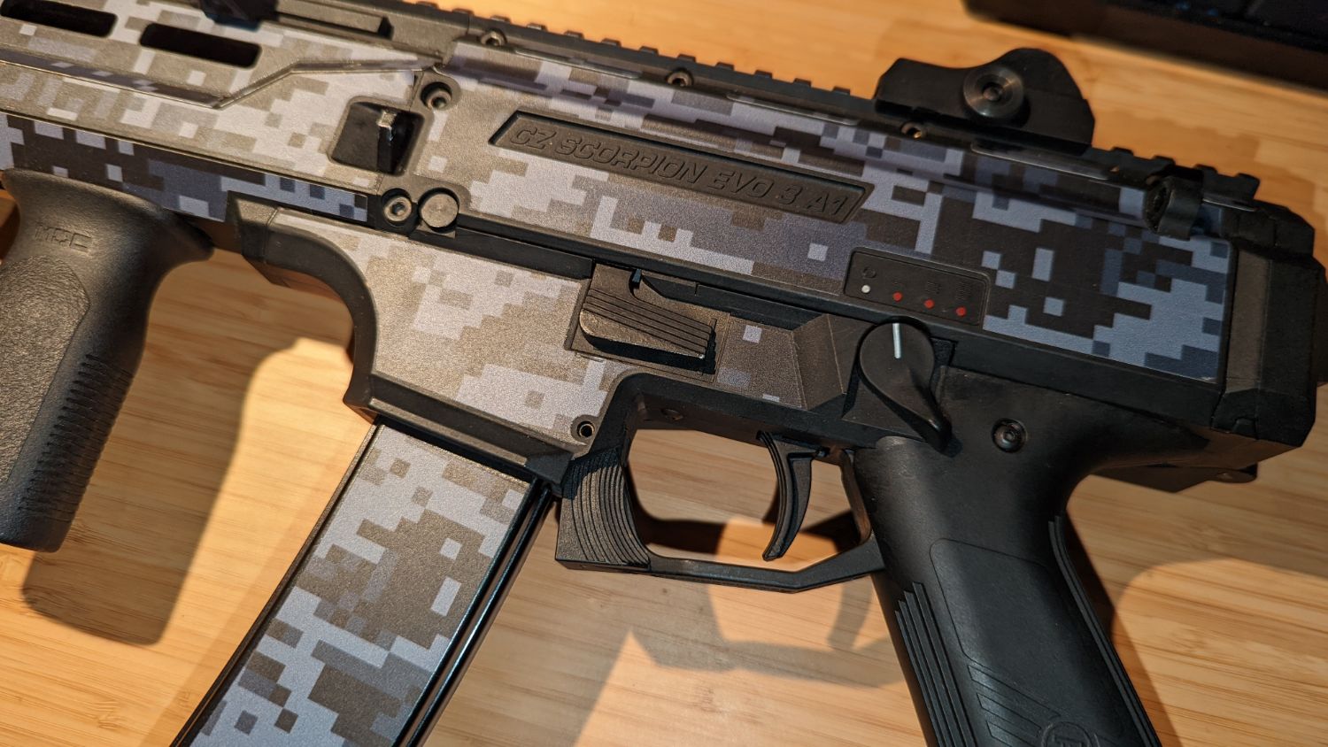 Has scorpion skins vinal camo applied.