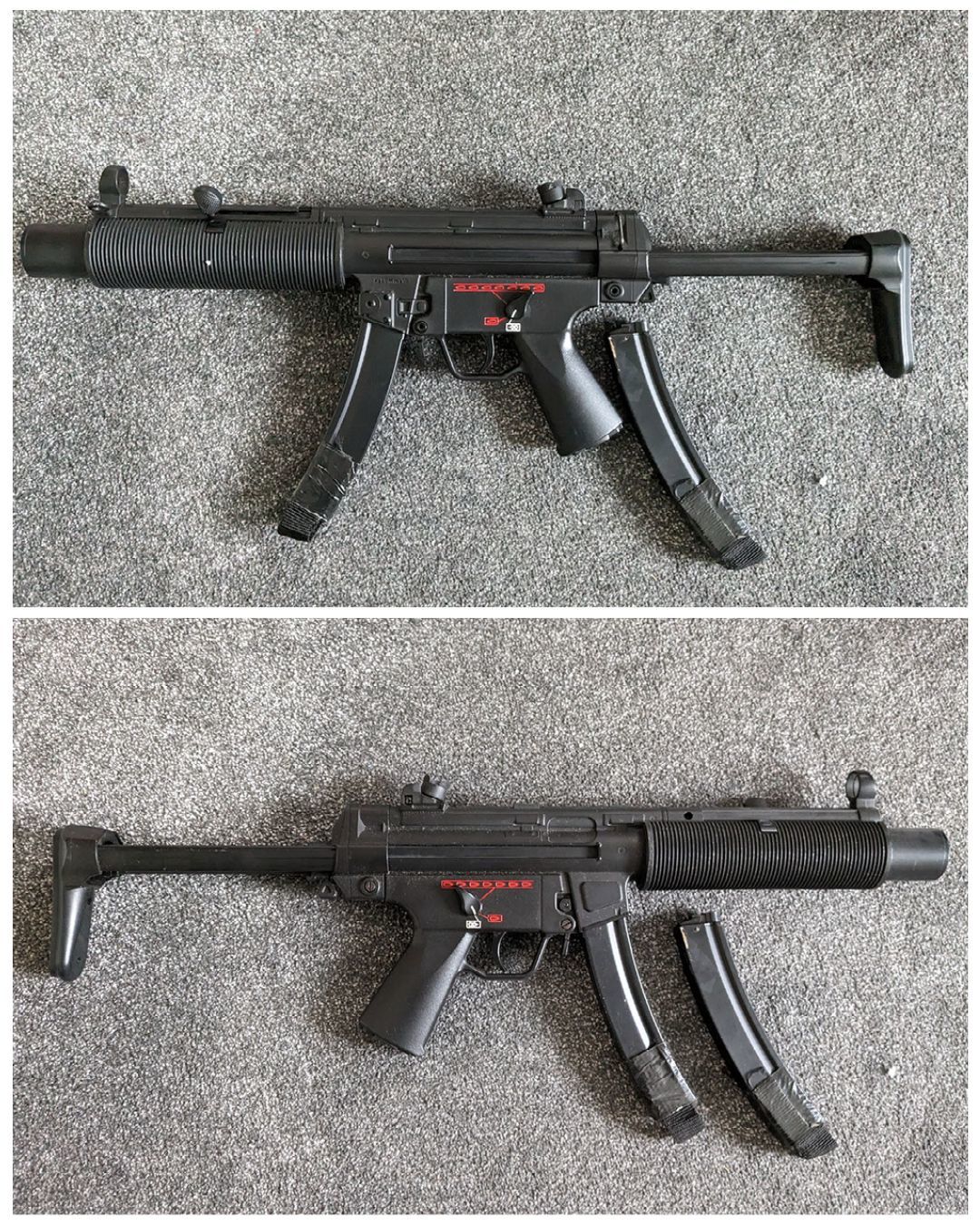 3. ICS MP5 SD AEG. Mostly metal (probably realistic proportions). The rear stock doesn't lock in place properly for some reason. The front silencer has been cut down by a previous owner to make it shorter as a sniper support, was quite a neat job I think. Not sure how great the internals are, it used to shoot well but didn't skirmish with it very often. Two mags. No box.