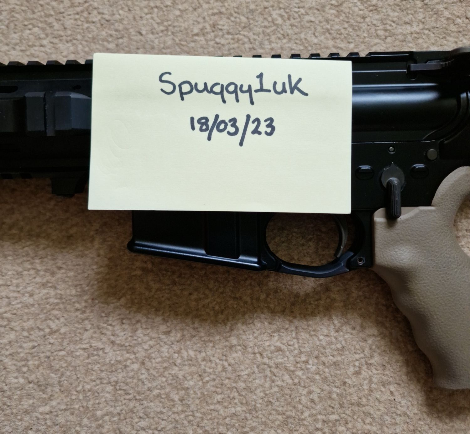 Never skirmished, less than 50 BB's put through it to test for function! No mods or changes of any kind internally (completely ‘stock’ from new). The barrel has been cut and re-threaded to correct length (14mm CCW by LC’s Engineering Outpost). This type has the plain, unmarked lower receiver that can be engraved with correct trades if required. FPS not known/not tested.