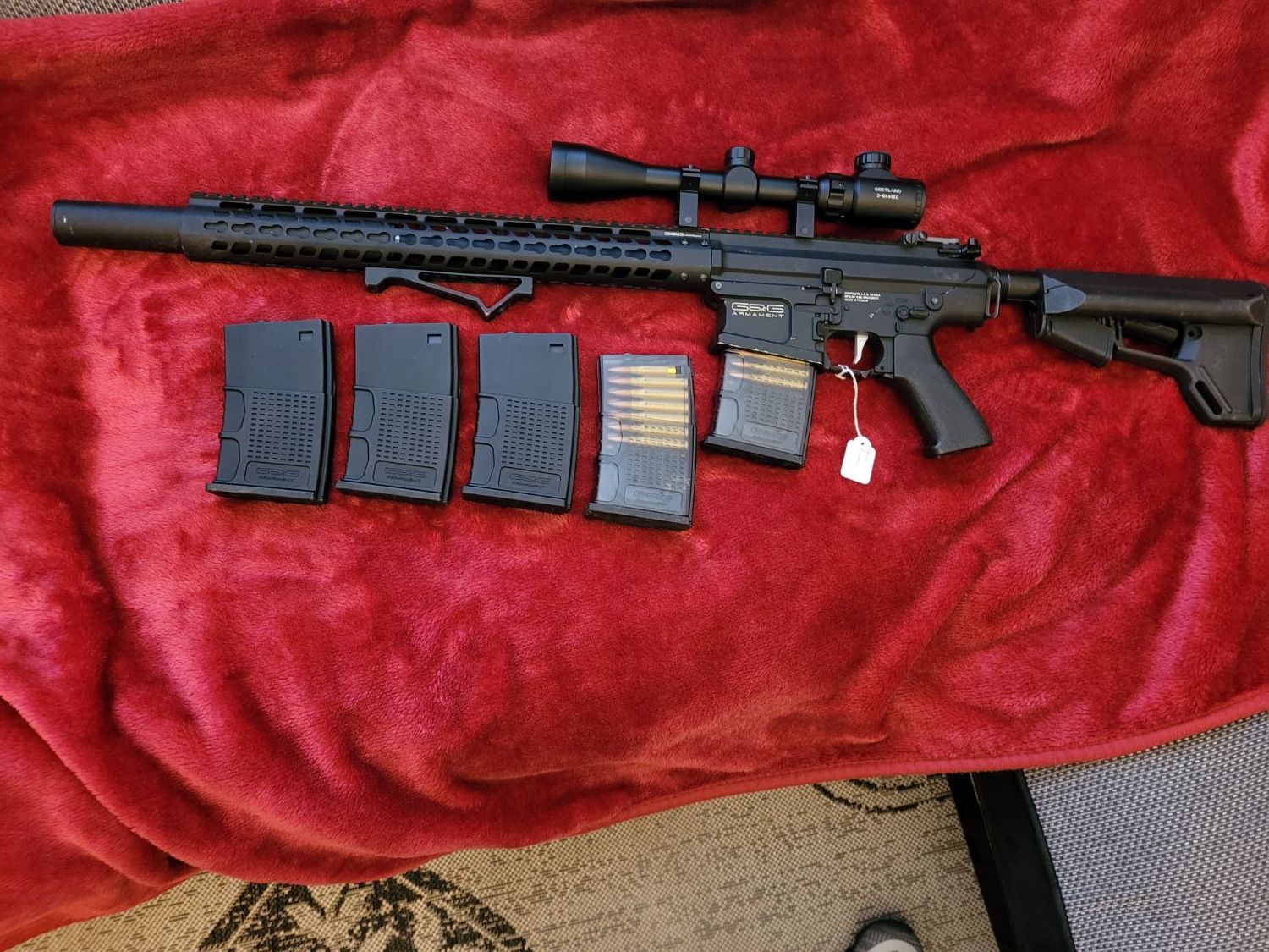 fully upgraded g&g tr16,high speed set up. just serviced. comes with 3 hicap mags, 2 mid caps. £390+ p&p