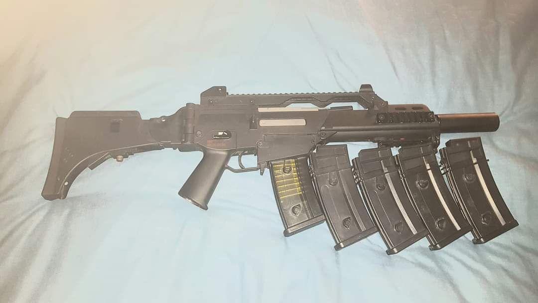 Automatic electric airsoft gun (AEG). Replica of model H&K G36CV - blowback version (Black) in a licensed version of the company under the brand Umarex Heckler&Koch GmbH. Therefore, all offered models equipped with a real engraving of H&K with a unique serial number, for some reason the blow back not working don't know why, can post it the buyer would have to pay for the post.
