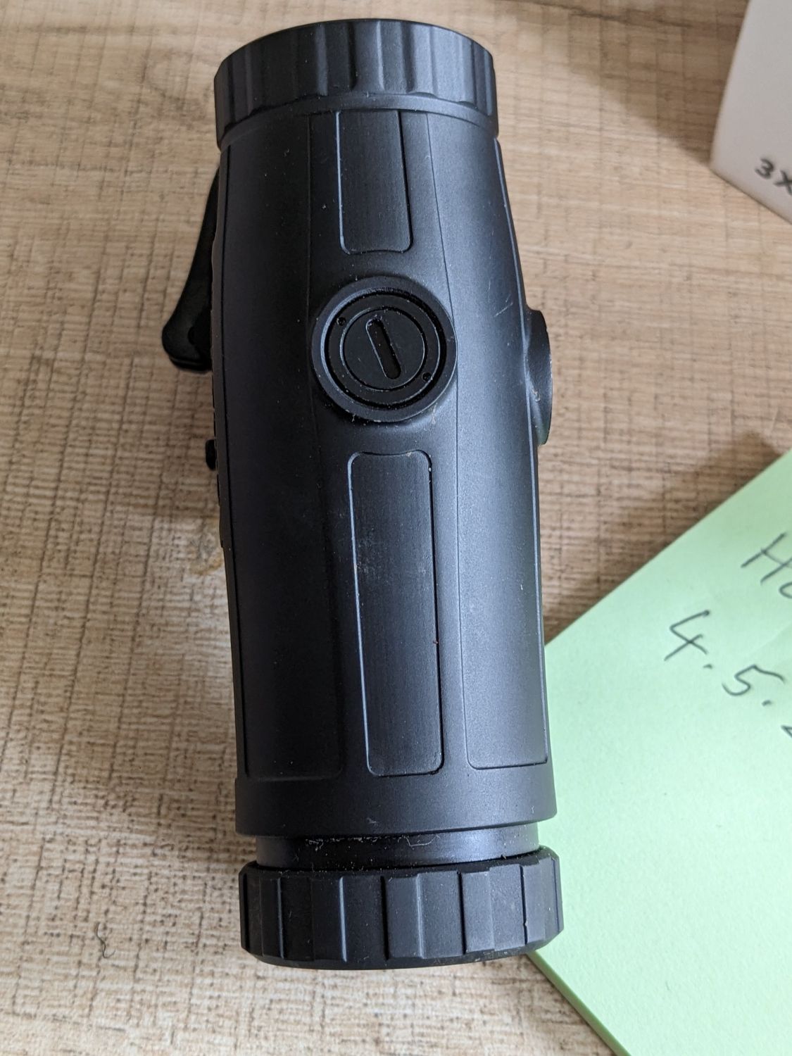 Very minor scuffs from where it's been mounted on a rifle. Clear glass