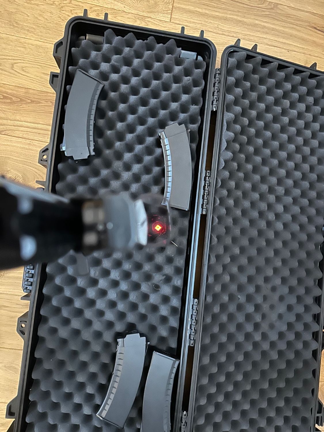 comes with 2 mid caps, 2 high caps and cheapo red dot sight + side mount