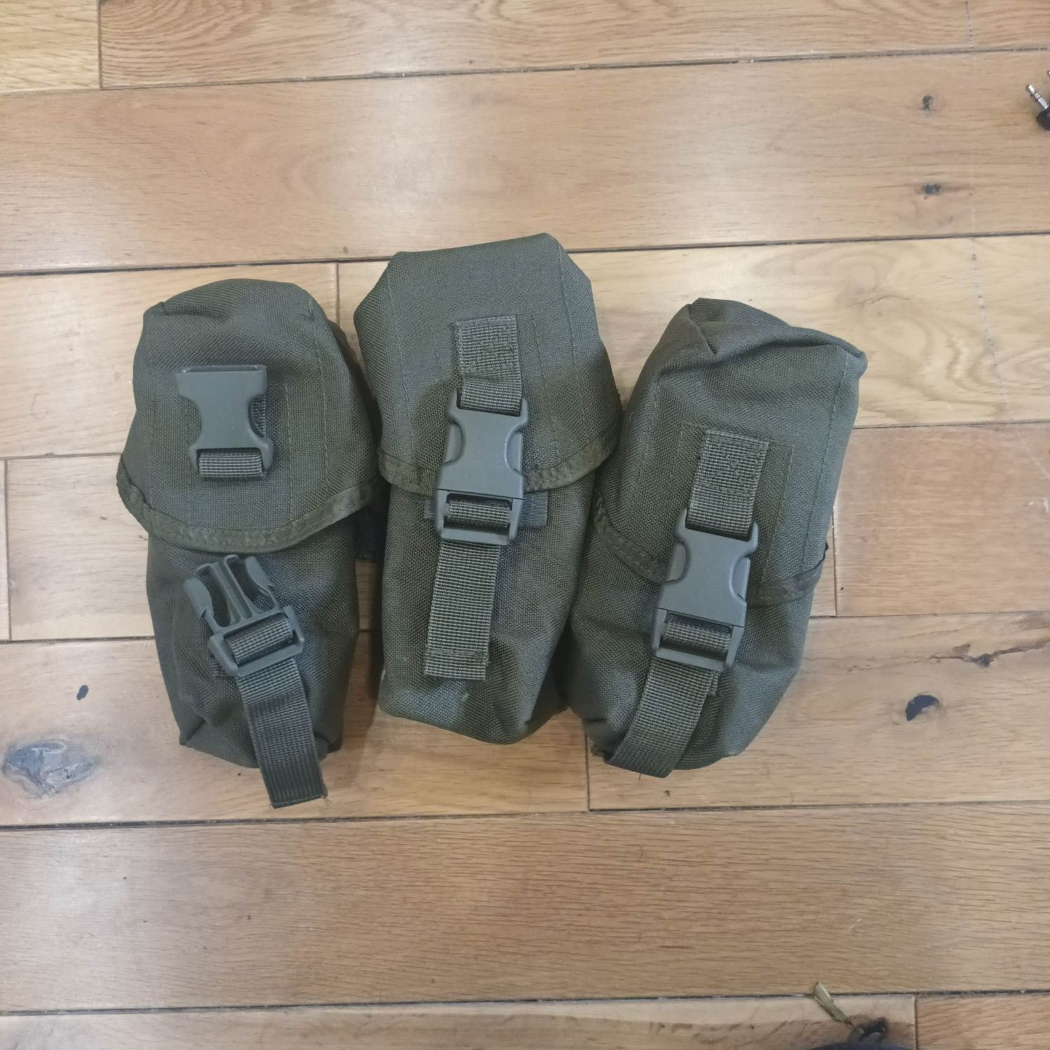 3 large double universal mag pouches( waterproof coating used quality, both velcro and buckle closing velcro can be silenced with a cover) - £10 + £5 p&p