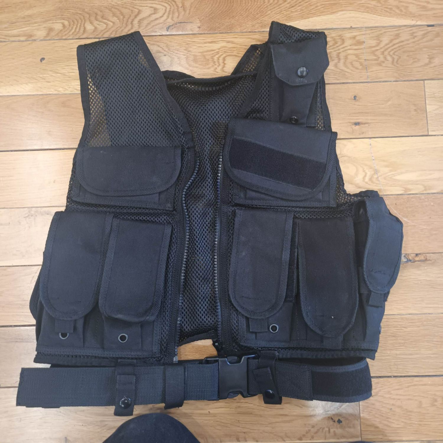 black tac vest - has 6 single mag pouch 3 utility pouches near new decent quality - £15 + £7.50 p&p