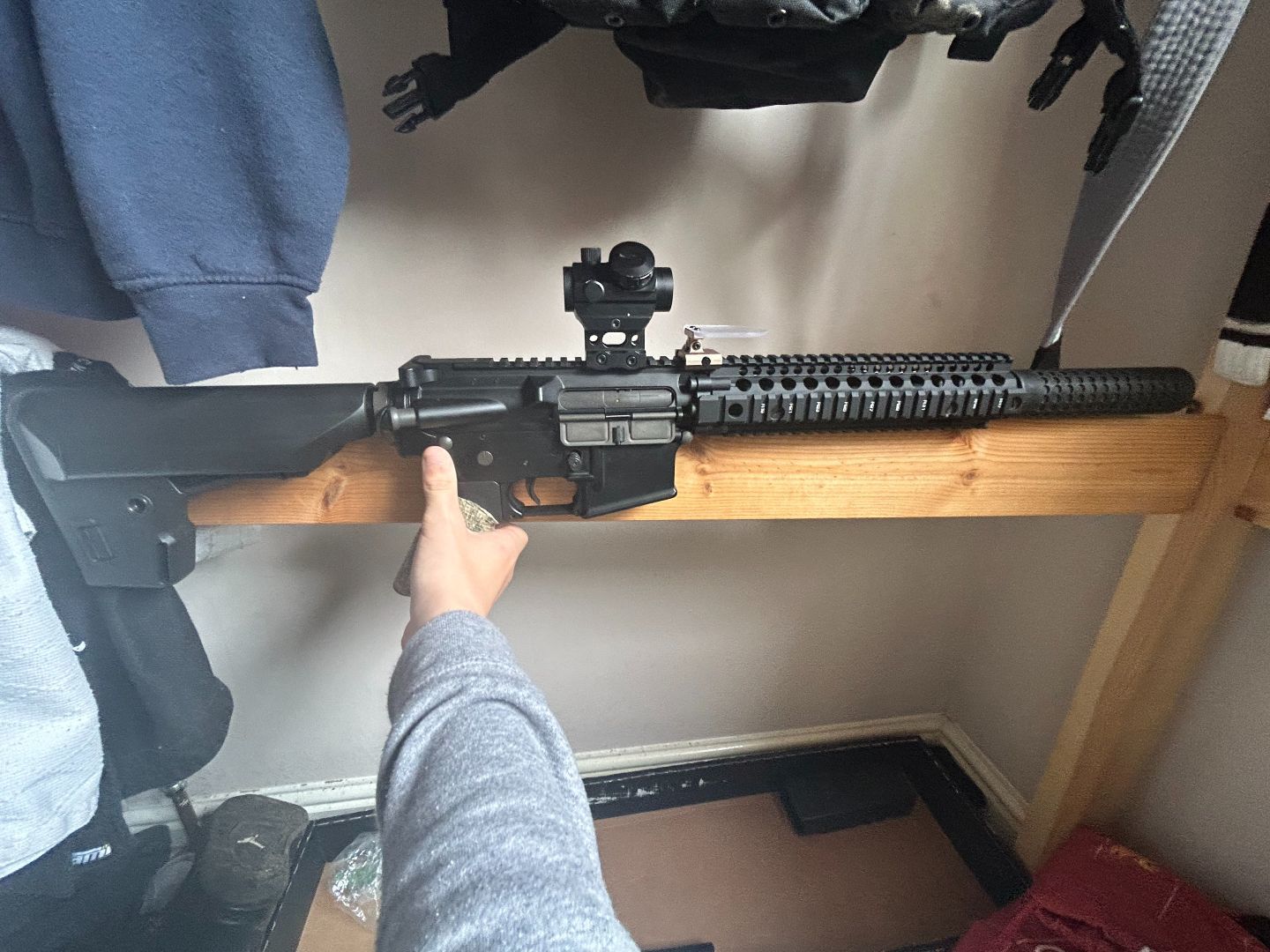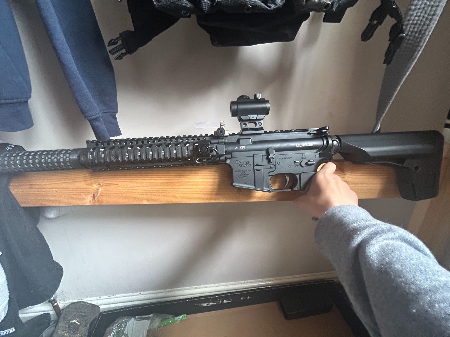 BOLT MK18 recoil system used once comes with 3d printed suppressor its solid a picatinny sling clip a viper 2 point sling 2 nuprol mags ones missing the bottom screw works completely fine though falls out some times but out the casing some times but its on the odd time also comes with 1450 and a 1100 battery's I would like to keep the scope but i am open to offers with it comes stock apart from I upgraded it and put a purple Prometheus in it 250 fps on 0,25g bbs around 300 on 2s last time I checked great range I would like a mk18 or Wolverine with no recoil no recoil a all black 1 point sling I would like 300 fps and 2 or more mags doesn't have to be all of the above its just what I would like can be shipped trading because I don't like the recoil over all grate gun ?? add my discord to see pics one up#4708