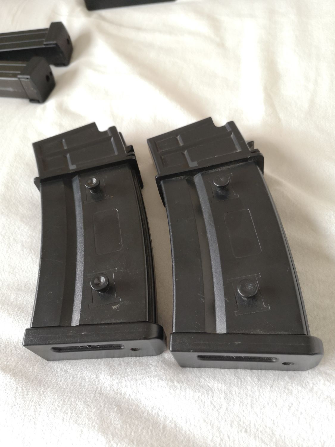 Kwa or AGS g36 hi cap mags. These feed in a kwa g36 and JG sl8 fine. £6 each