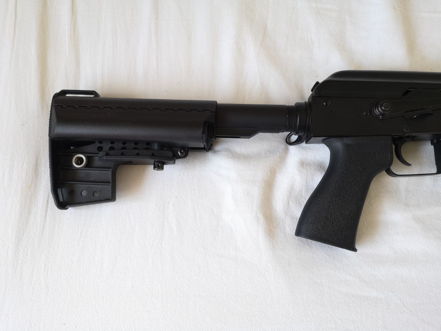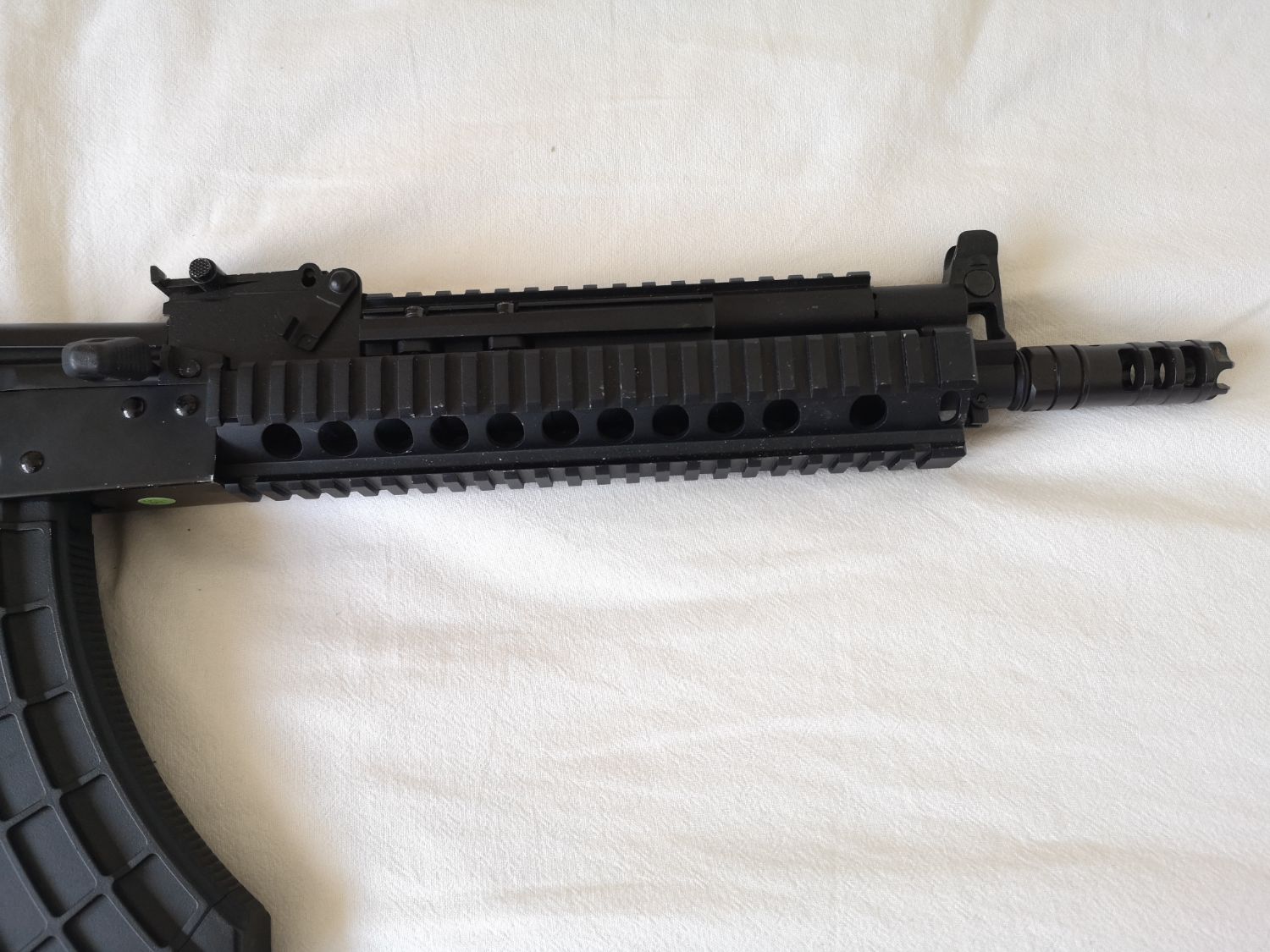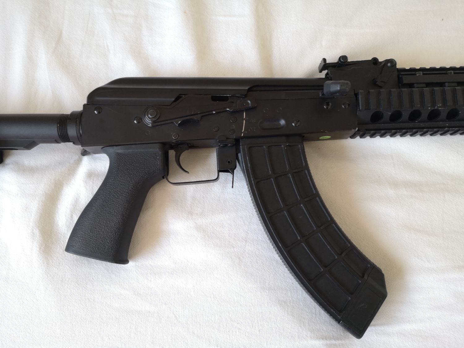 This is my cyma cm.040n tactical ak, full metal. I've not seen many like this. It has an ambi charging handle which is surprisingly useful for adjusting the hop up.