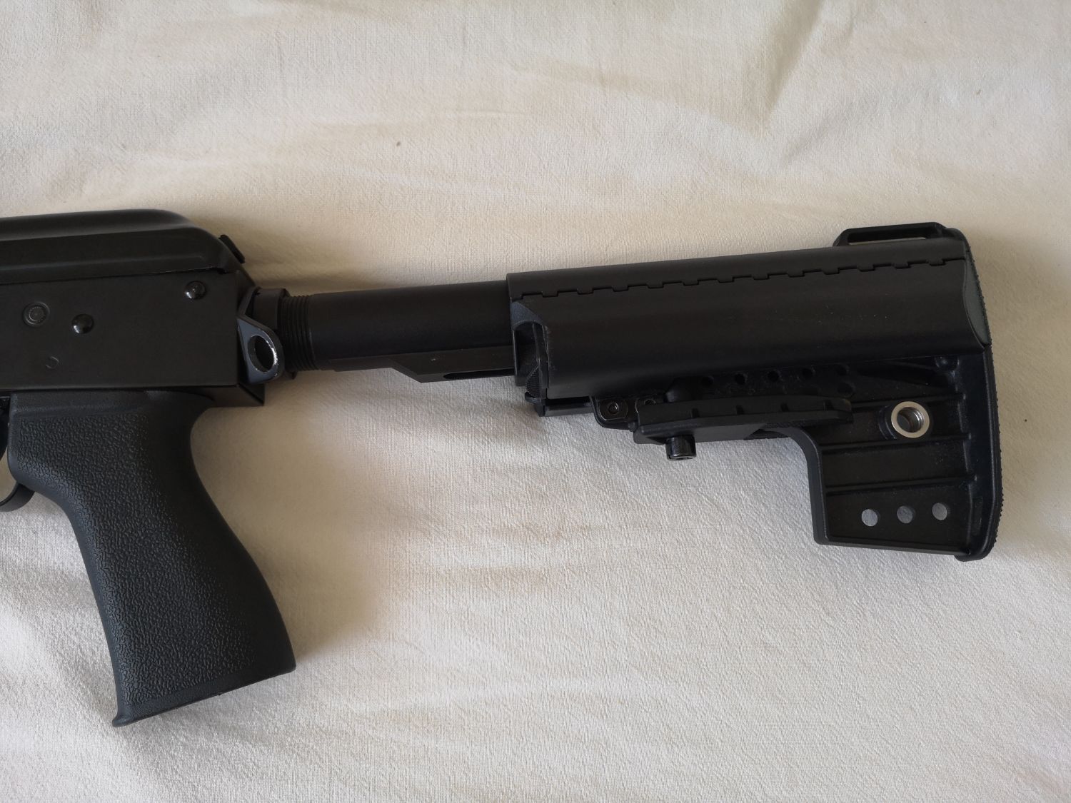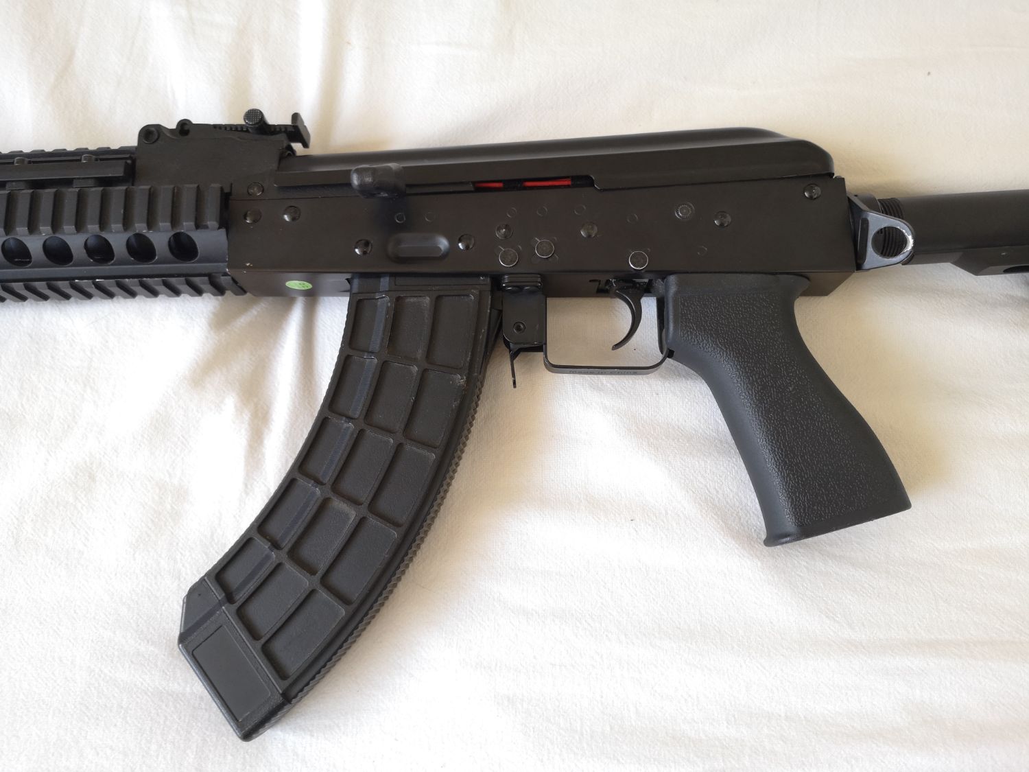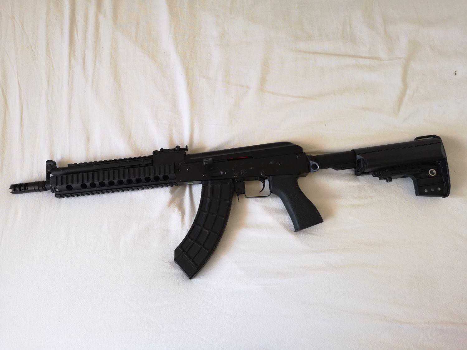 This is my cyma cm.040n tactical ak, full metal. I've not seen many like this. It has an ambi charging handle which is surprisingly useful for adjusting the hop up.