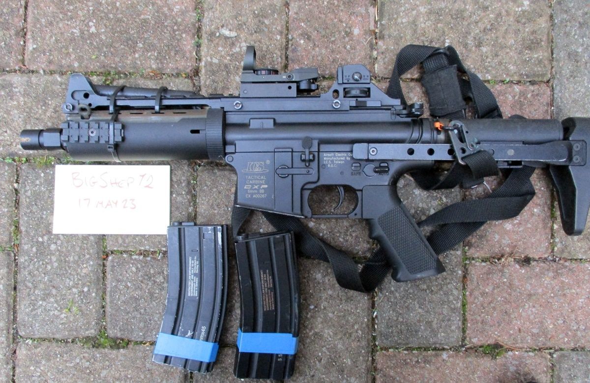 Rif works well and is aprox 330fps on .2's when I tested it last week. It is in a used condition, so has the paint worn off on a few bits. Battery is taped to the outside of the fore barrel as taking to front end off and on to insert battery is always a bit of a pain in the bottom to be honest.