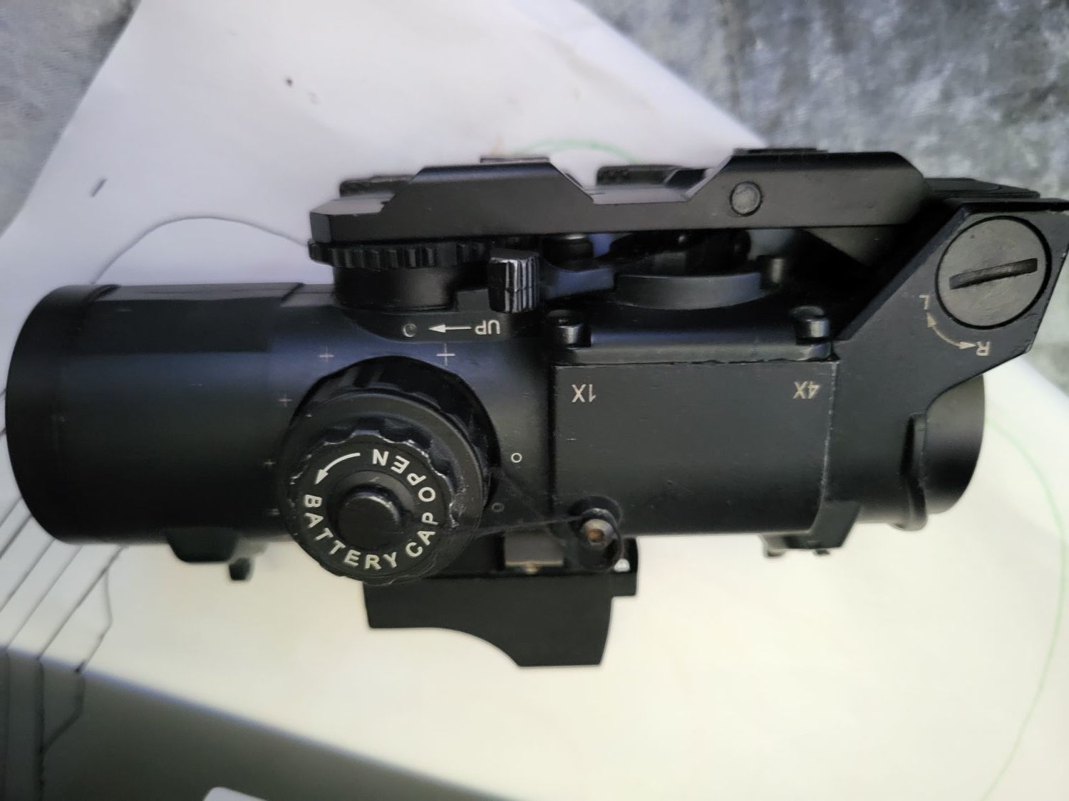 Reticle on the 1&4x scope illuminates but will need a new battery.