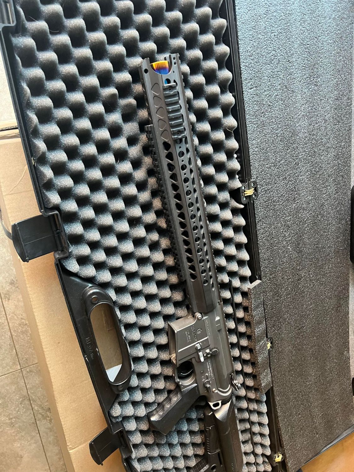 Fitted with an aftermarket flash hider, thats rather, erm, flashy.