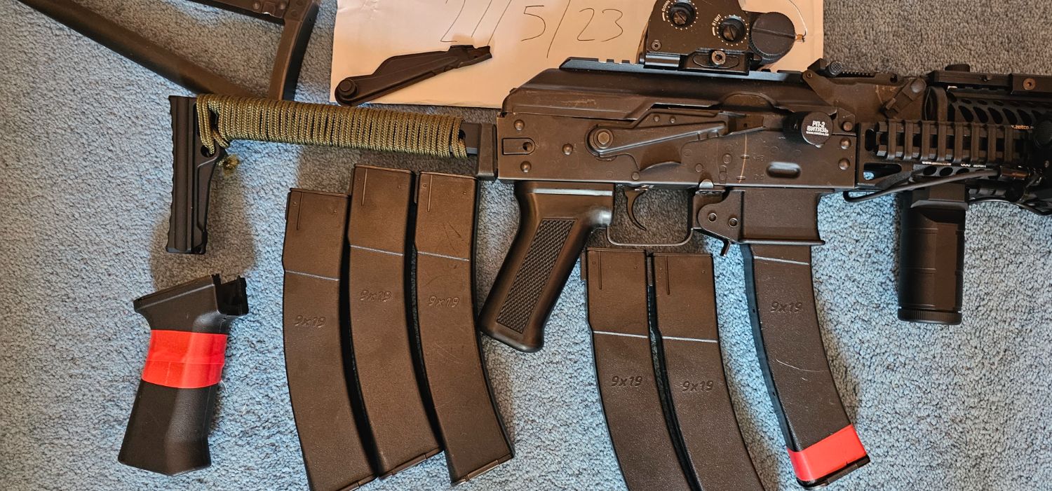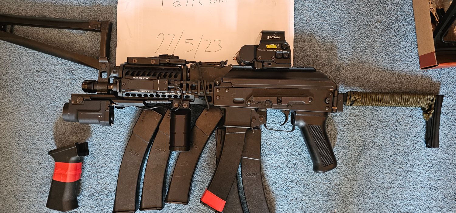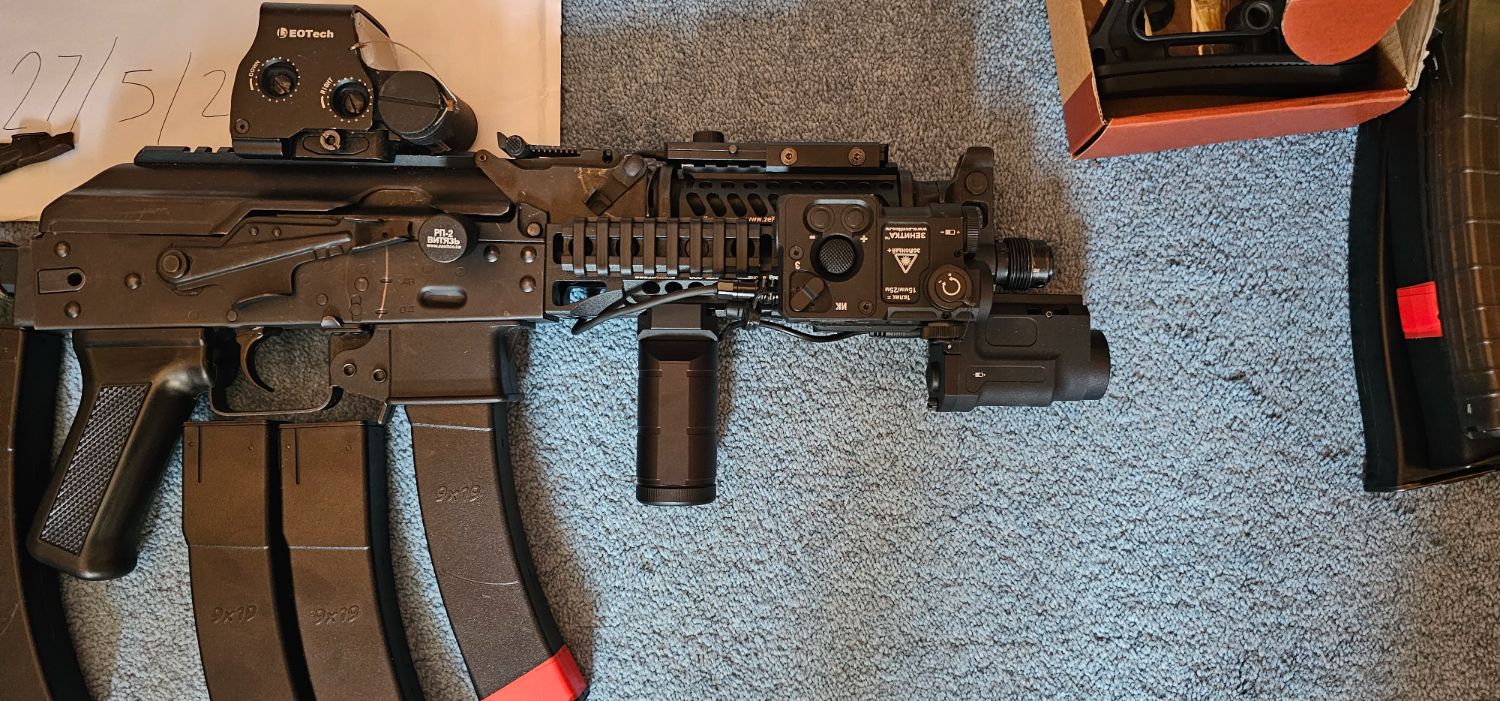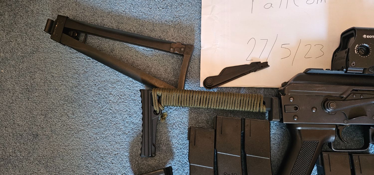 Accessories: Zenitco front hand guards, original handguards, ak pistol grip and original grip, 4x100rd magazine, 2x50rd magazine, pt2 charging handle, real zenitco pt5 grip, extended safety and original