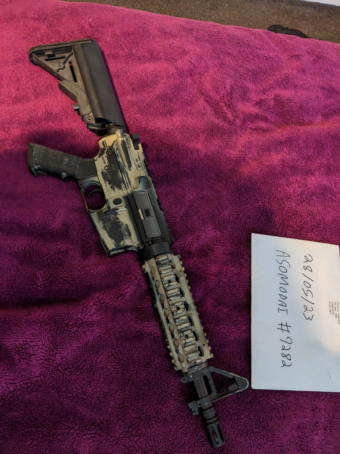Some movement on the front rail/front sight post so may need shimming potentially. Missing stock rubber butt plate.