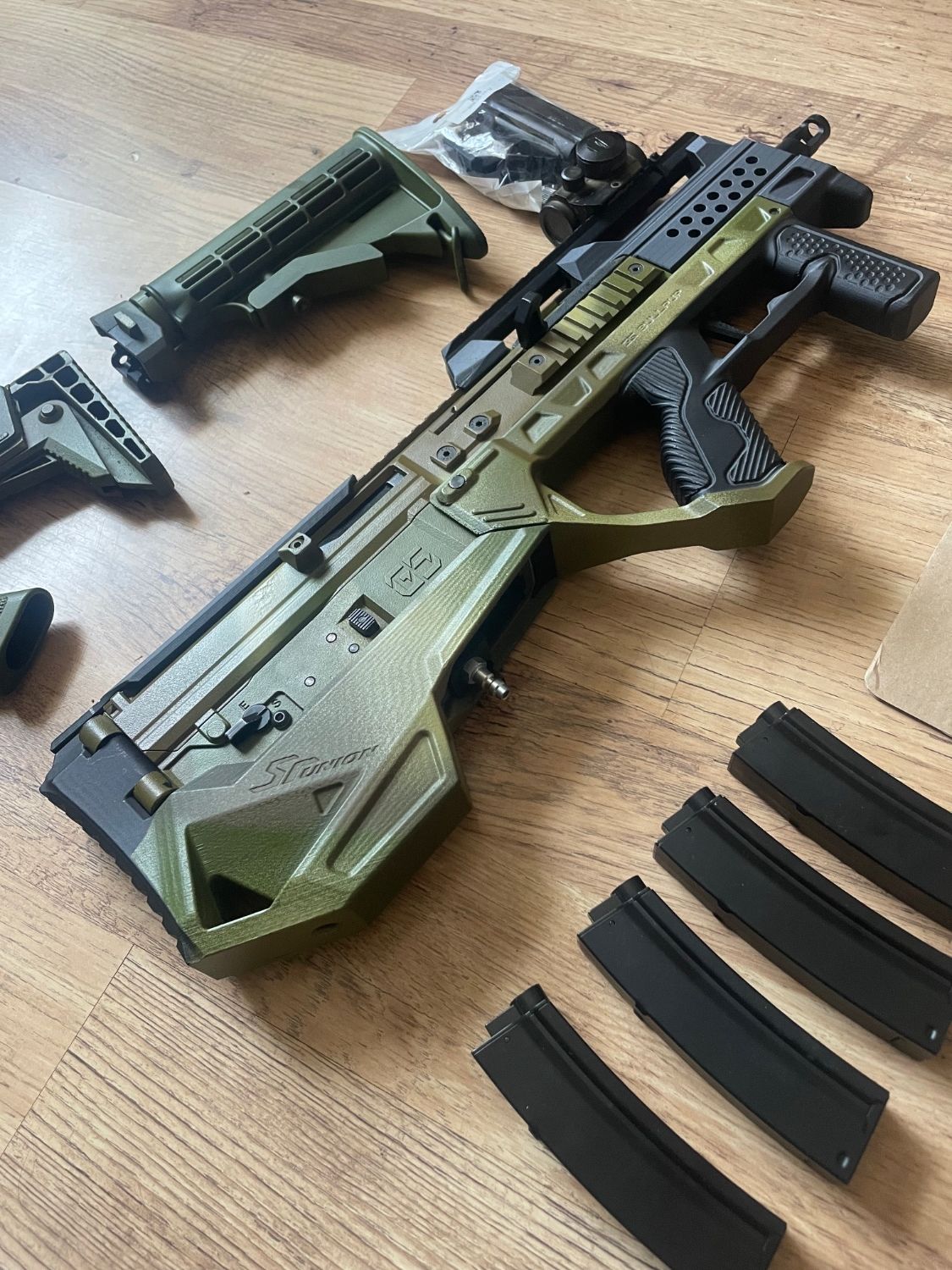 Ghk g5 - Sru bullpup kit- airtac mp5 hpa adapter- t1 red dot- original folding stock- buffer tube adapter- extended crazy jet inner barrel- 5x short mp5 mid caps- epoxy mod done. £400 posted and paypal’d