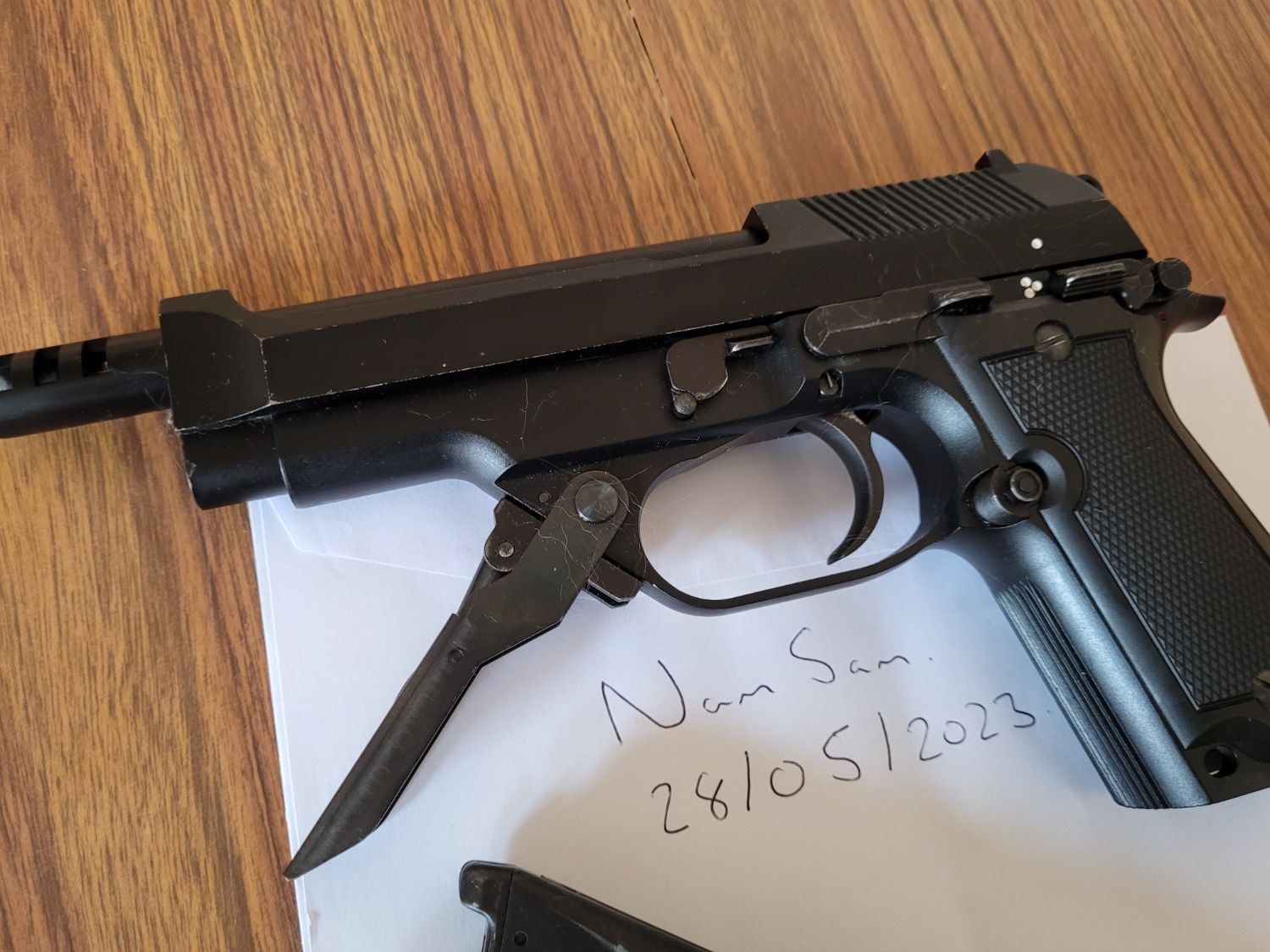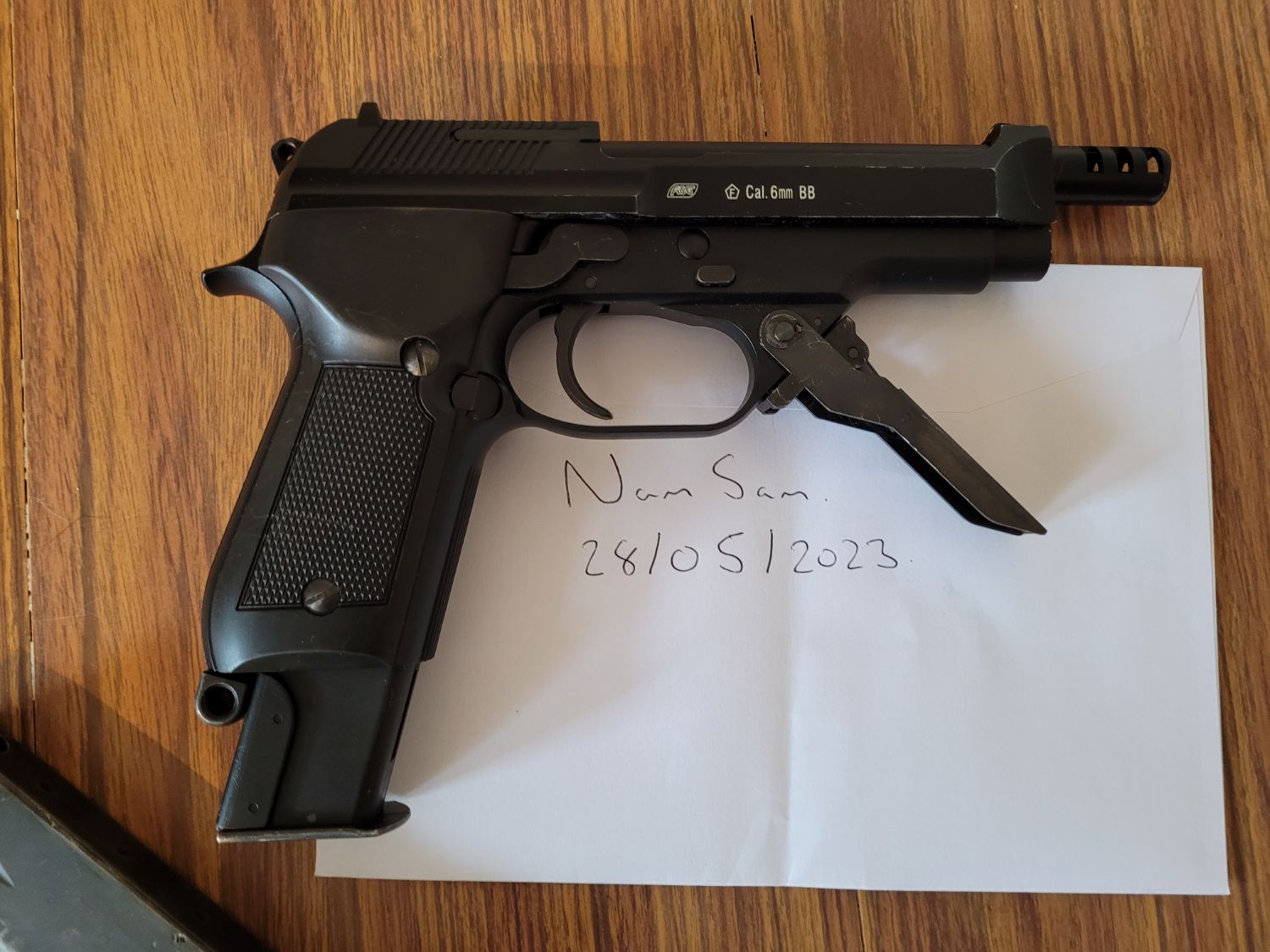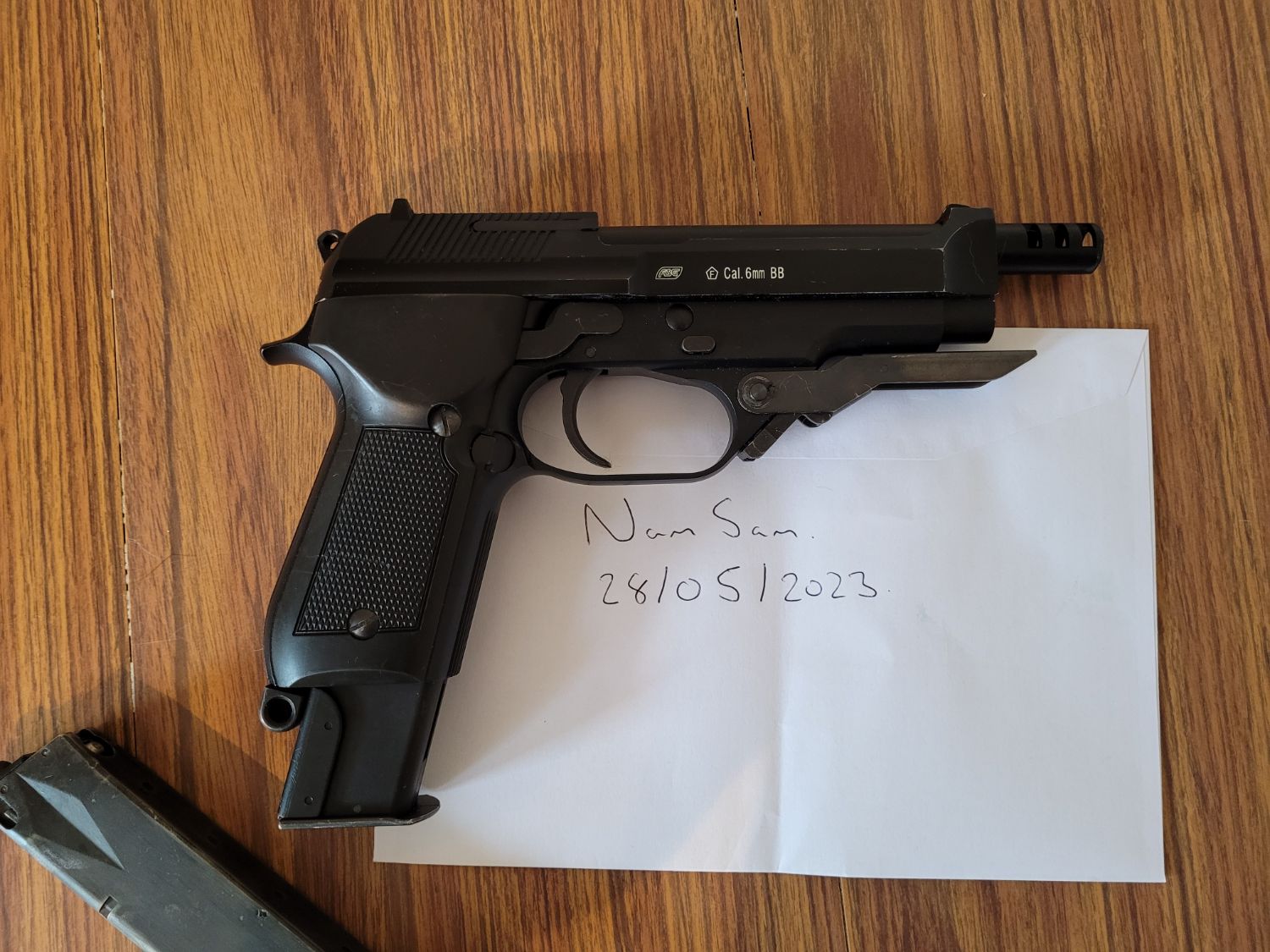 As can be seen it has usual wear marks on slide paint etc. Both mags hold gas perfectly and the gun cycles well. It is missing the hop adjustment key so one of these will have to be sources.