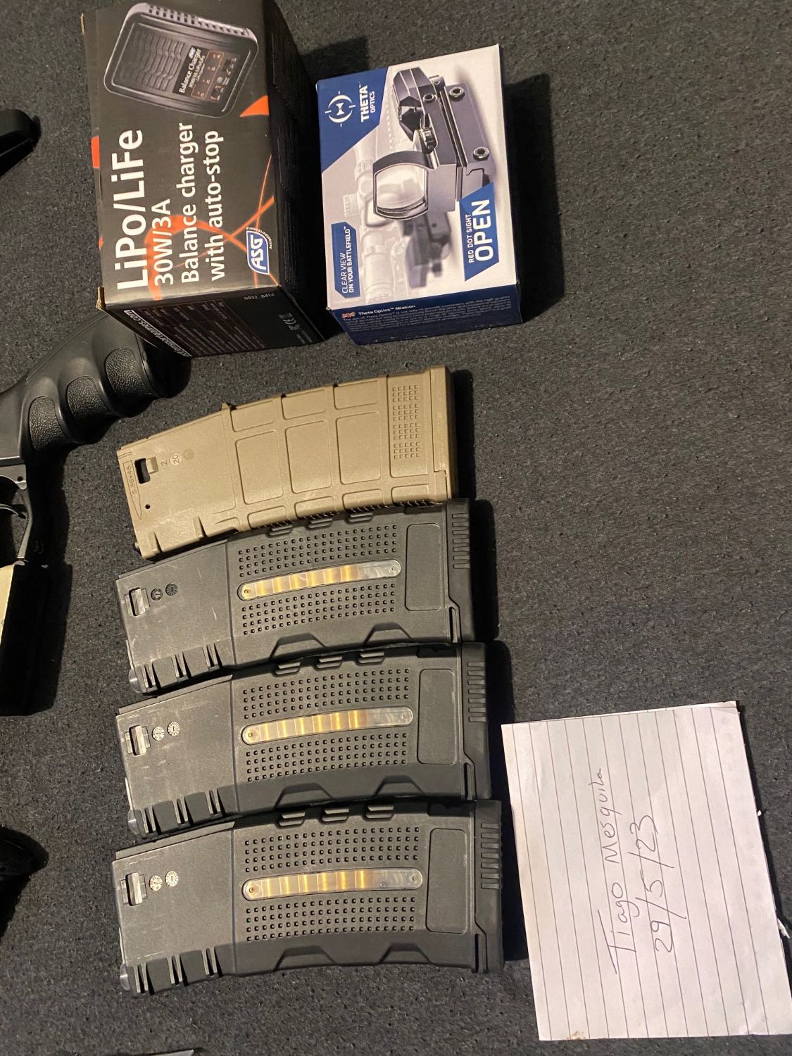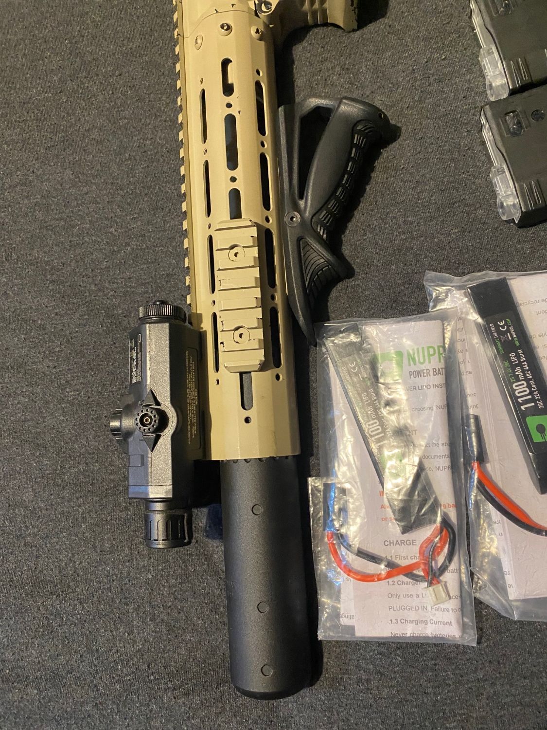 Selling my g&g honey badger due to not using it since buying my mp7. It has been painted as you can see, it comes with the peq box, grip, 4 mid caps and two high cap magazines. I have also included a red dot sight and the battery’s and charger. Unsure on the battery conditions as they have been sat in the shed for almost a year so could probably do with buying new ones.