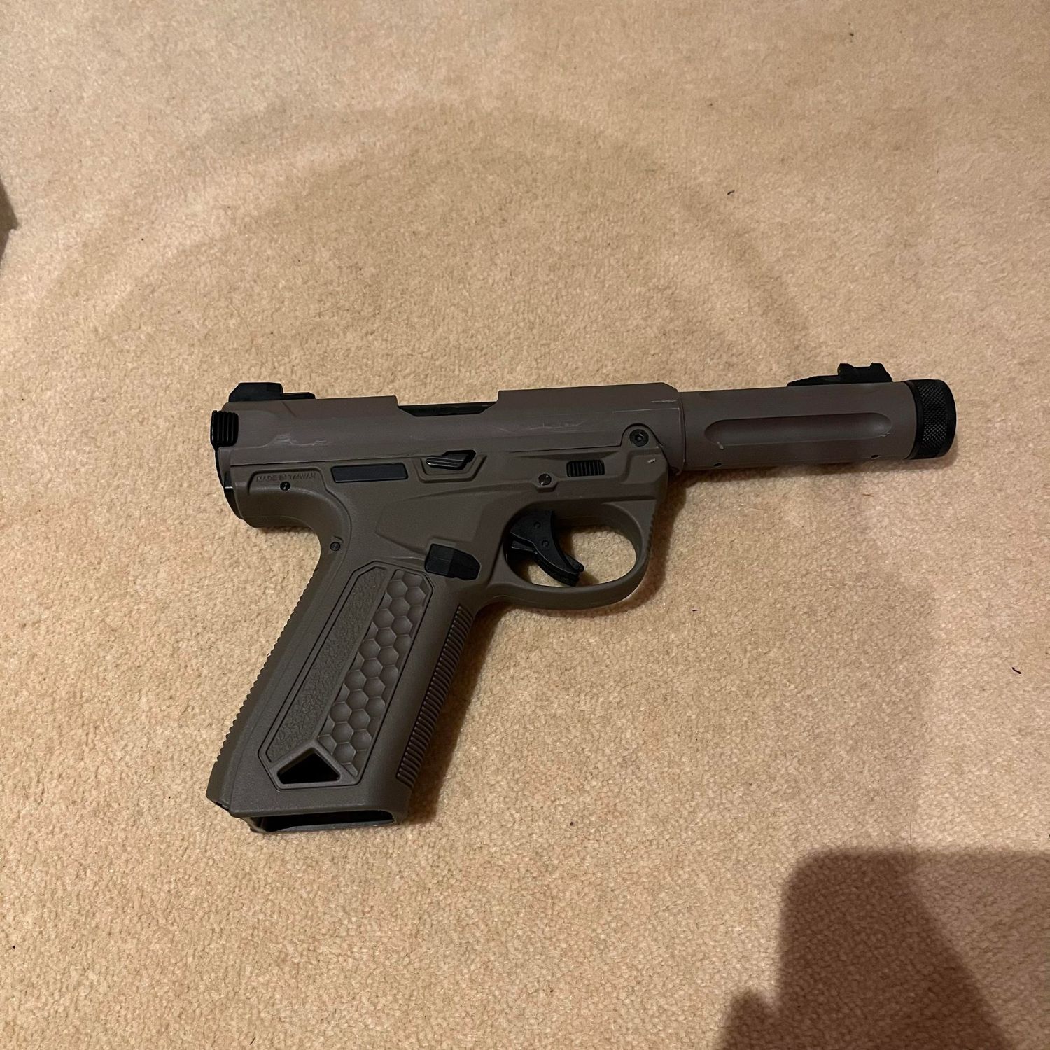 Selling my AAP01 in FDE - Comes fitted with Autobot 2021 Silicon VSR/GBB Bucking 60° (Yellow) which enables this to hop 0.32g BBs easily out to 50 meters.