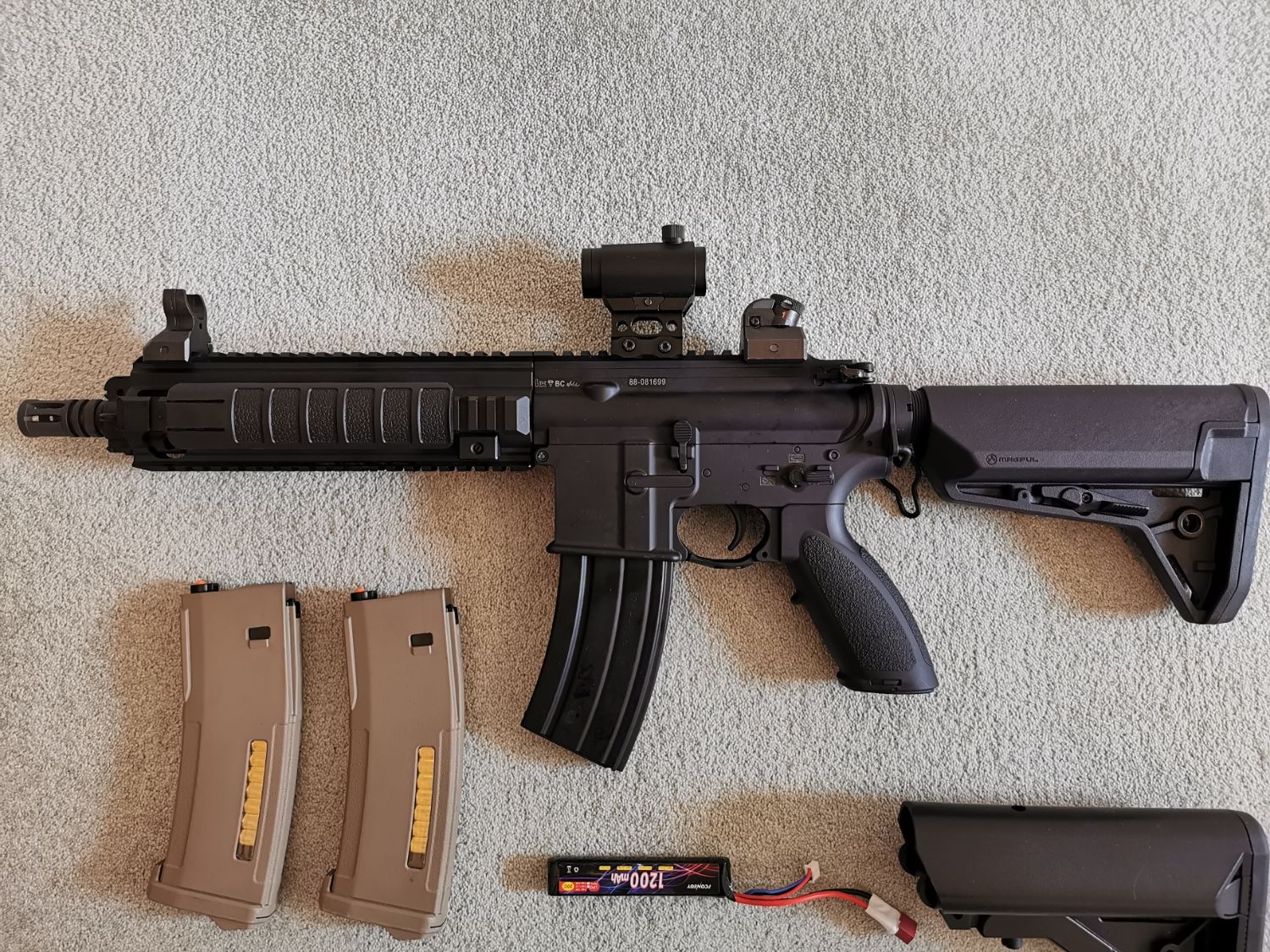 6) Real Steel Magpul SLS stock (115) -- this has been modified to have battery inside
