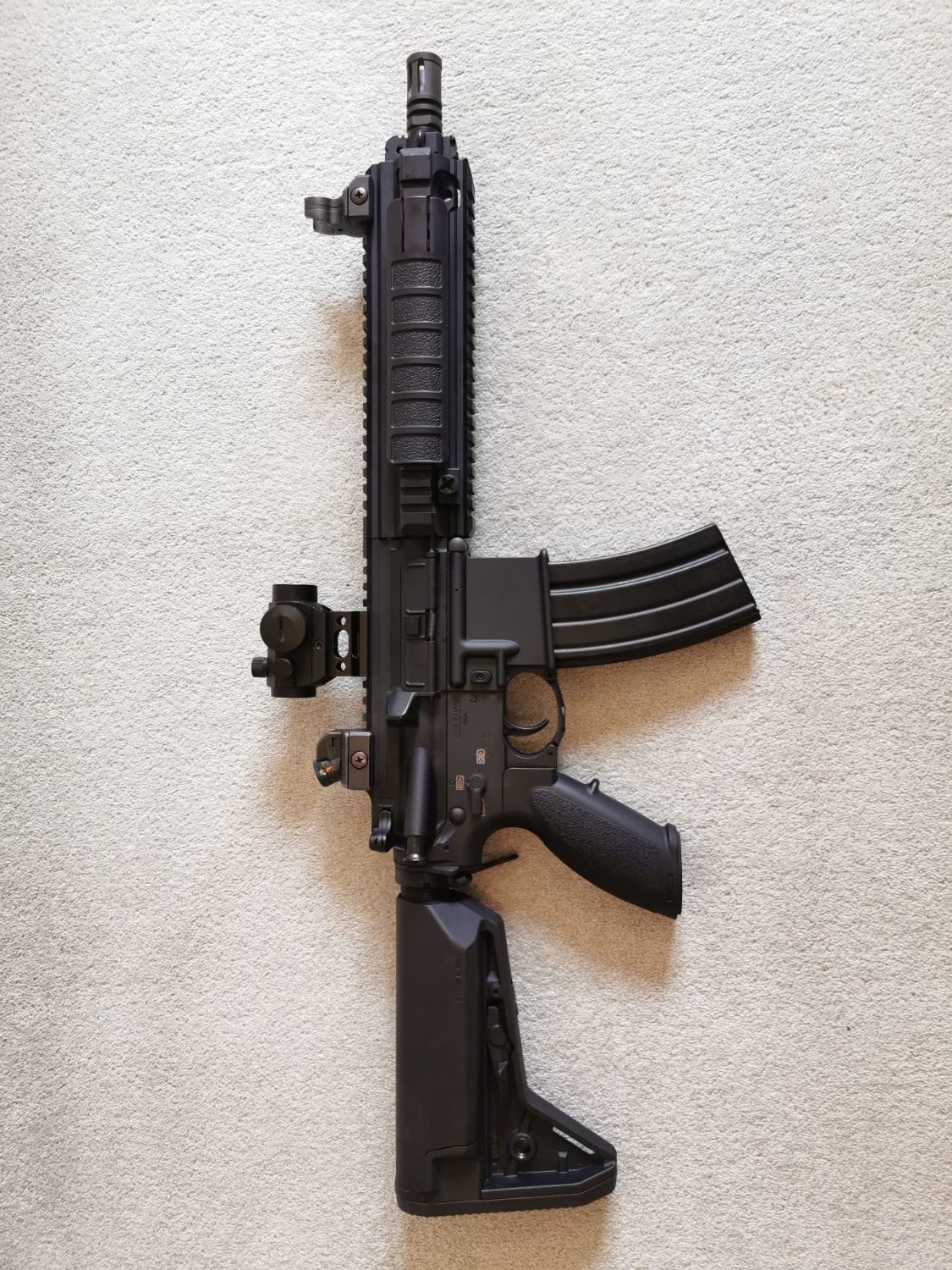Selling my beloved TM NGRS HK416D due to lack of playing time. It is in great condition (played less than 10 games over the past a couple of years and always maintained and well looked after and never dropped or mis-handled) and has been serviced recently (new spring, o-rings, etc) and had a fresh coat of paint (looks like new). It is shooting lasers up to around 65m with 0.3s, very consistent FPS wise (just below 5 FPS variation). FPS with 0.2 around 343 FPS.