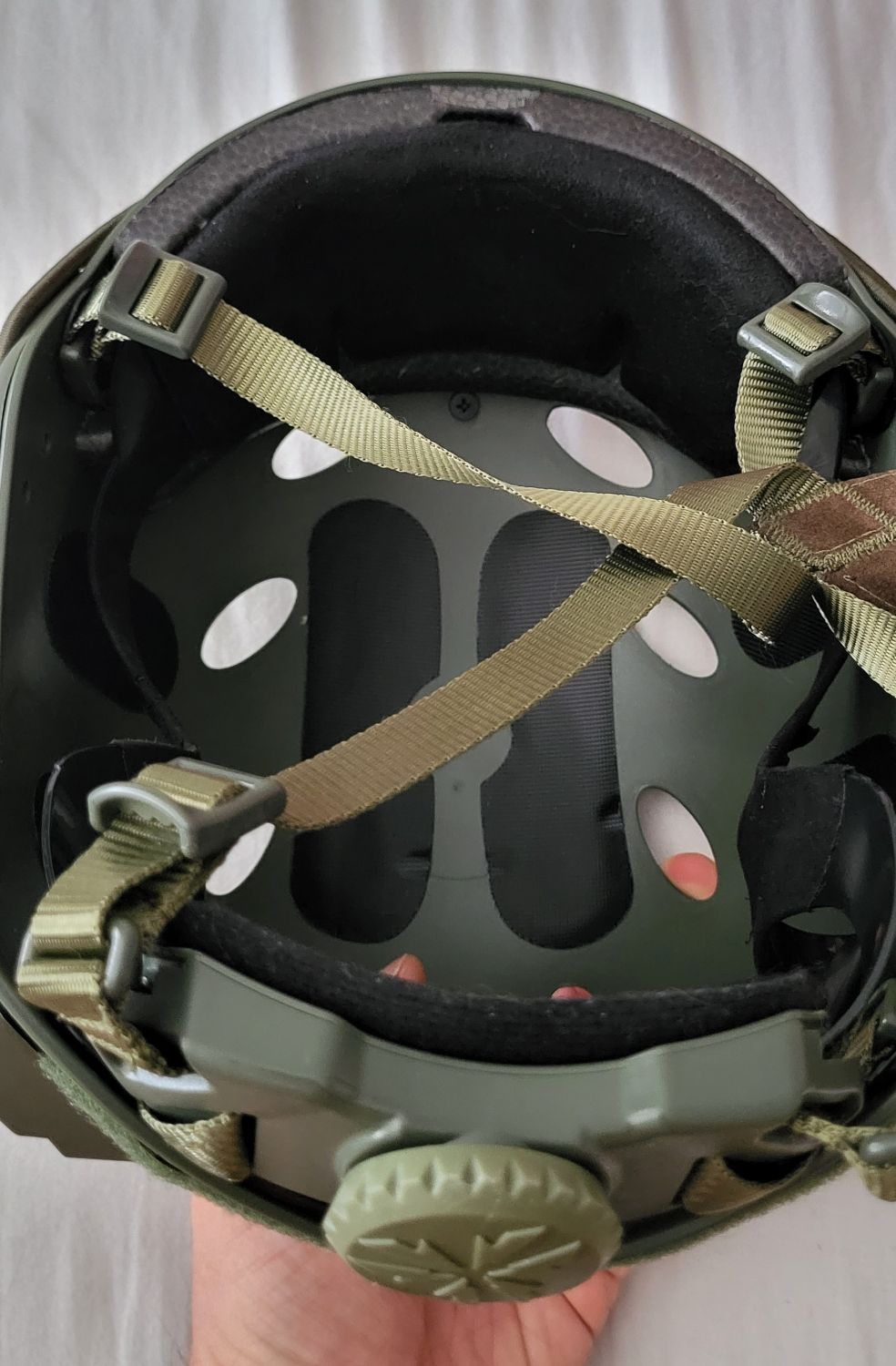 Brand new Arrived and its too small for my fat head! Comes with all the pads in bags and rail clips etc and brand new Multicam helmet cover