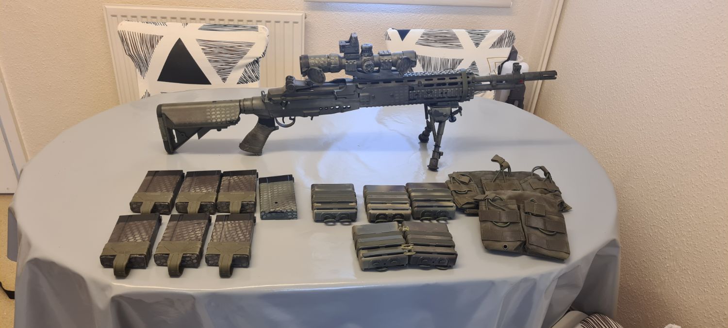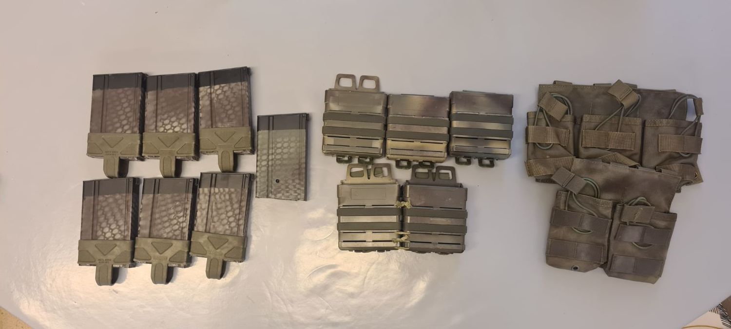 Scope + mini rds, x6 mid cap mags with fitted magpuls, bipod, x5 repro Fast magazine pouches, molle mag pouches (x1 2 mag and x1 3 mag)