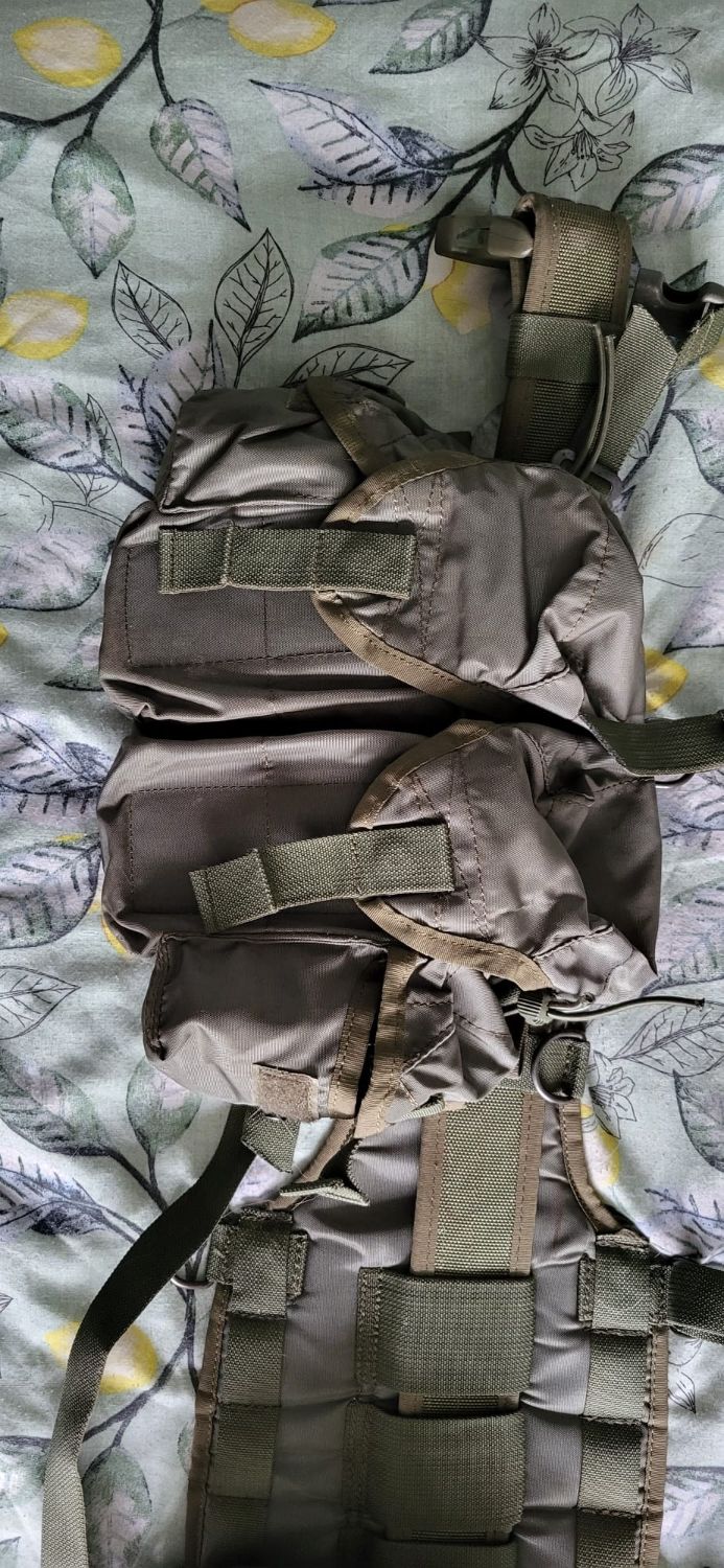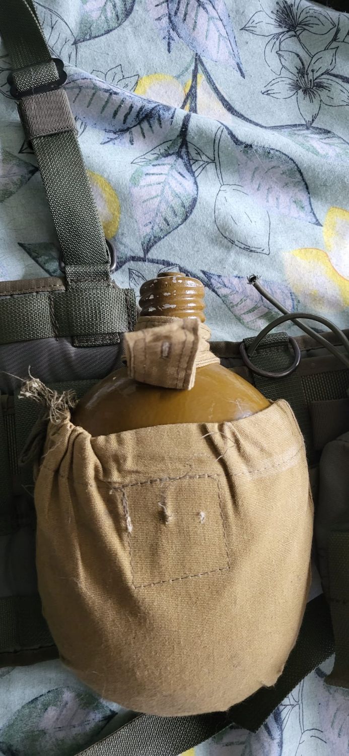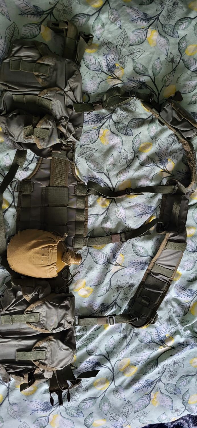 Very difficult to get hold of now from Russia as most of it is now spread around the Ukraine. Sso AK rifleman webbing two four mag pouches with removable dividers with two grenade pouches attached, first aid pouch with original Russian first field dressing, original Russian metal waterbottle and carrier. Plus there's a small pack that fits onto the belt or yoke that I'd forgotten about ?
