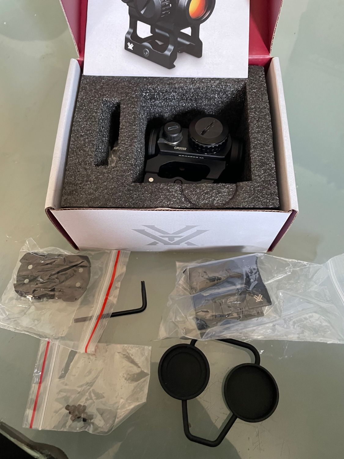 Crossfire comes on a repro scalarworks mount with box and all parts. No box for the 3x micro but includes rubber lense cover and spacer (installed).