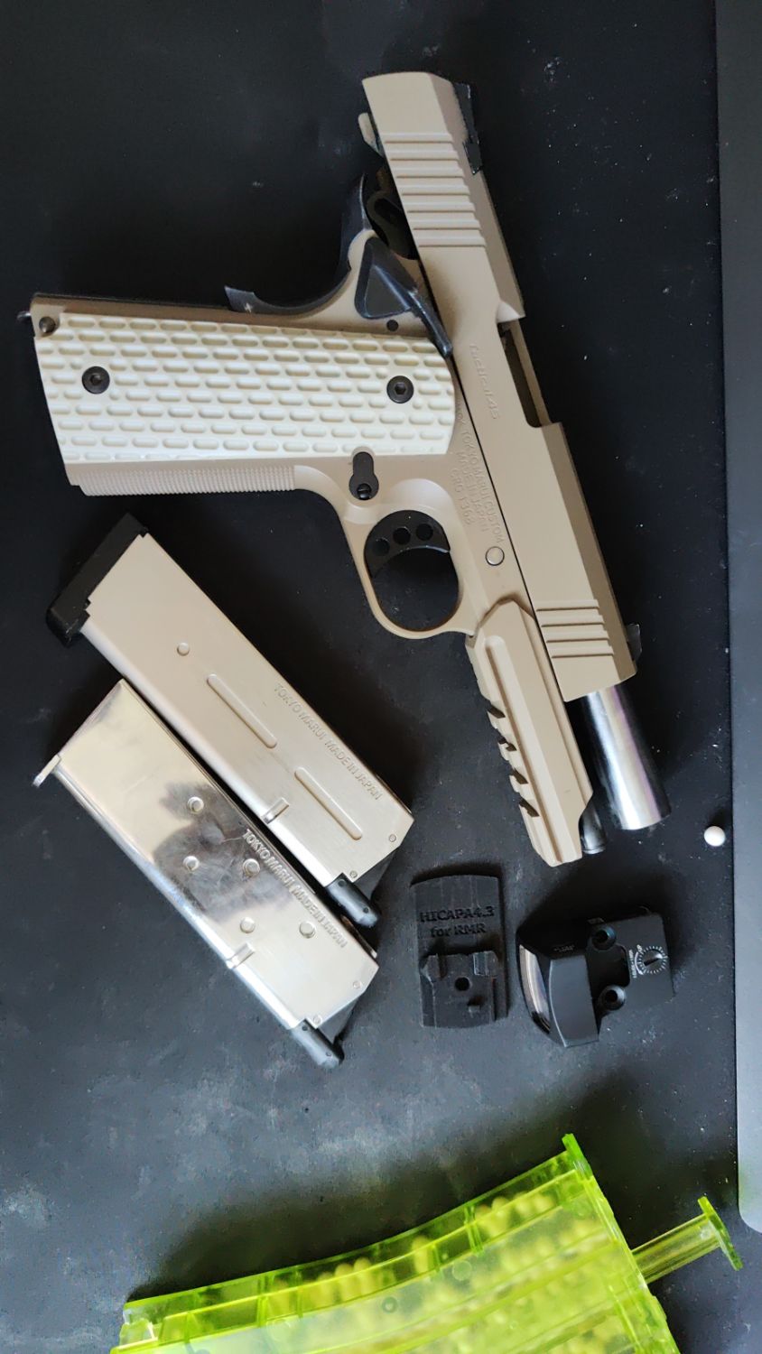 Comes with 2 leak free mags, rmr sight, rmr baseplate . Has been used so some scuffs around the slide . If I remember rightly It was shooting around 300 on .2s tested at outpost airsoft chester a few weeks back.