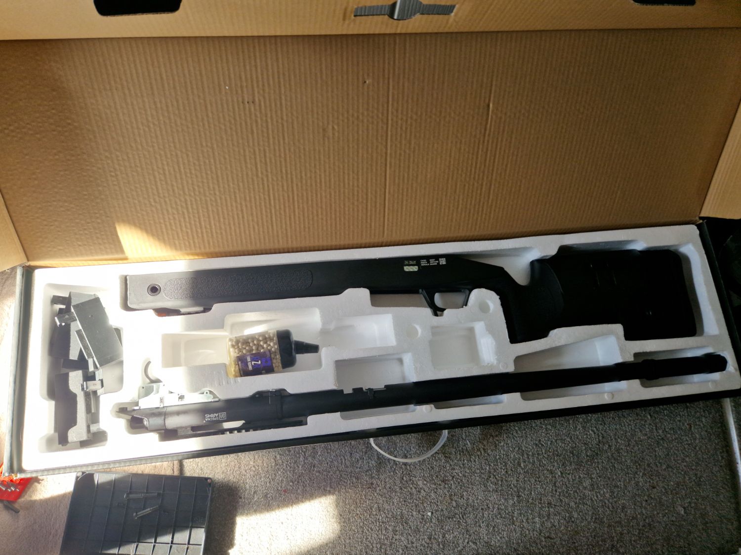 Comes with 5 mags and a bottle of 0.4 bbs not full as I used some when I first used it