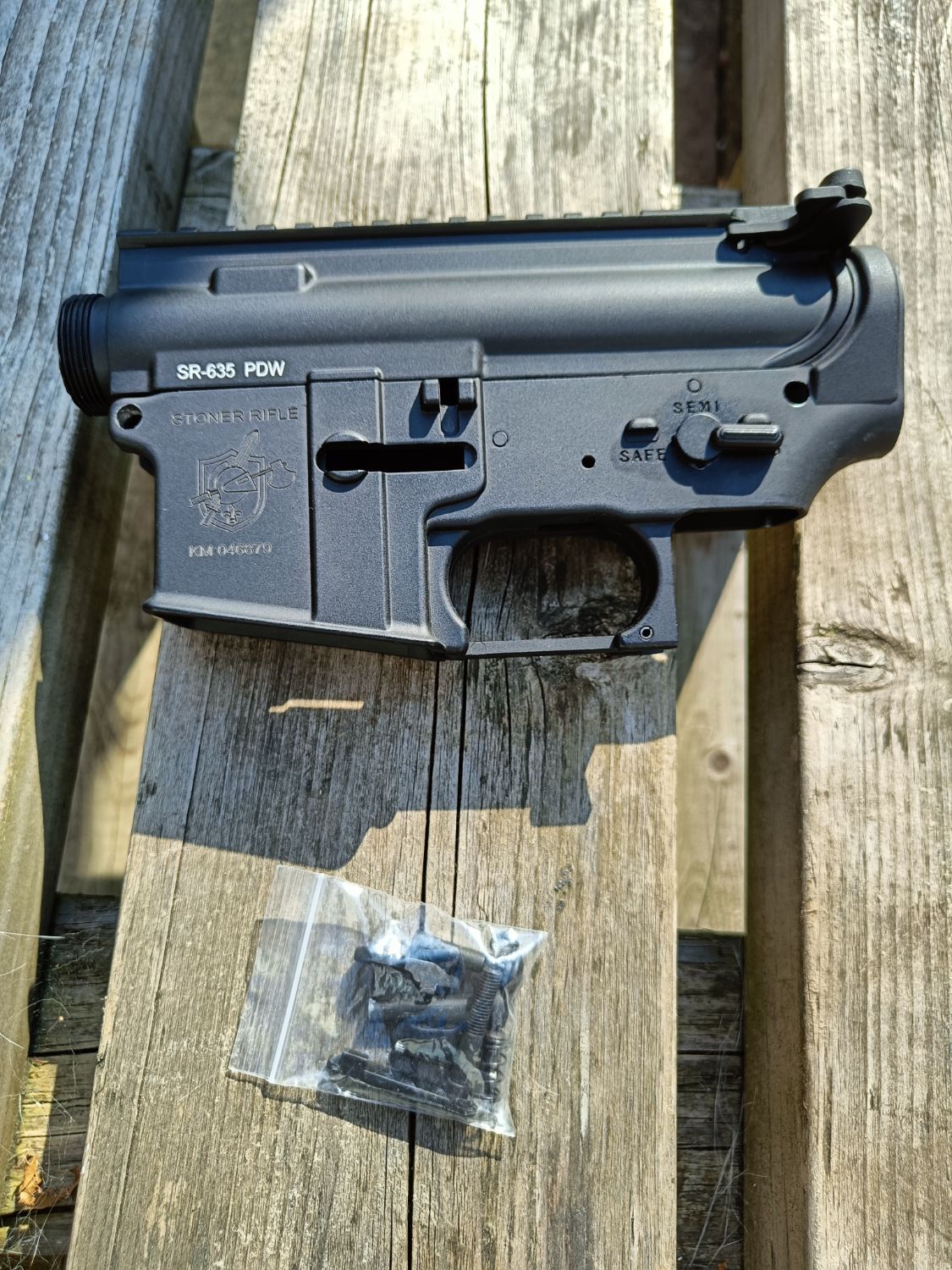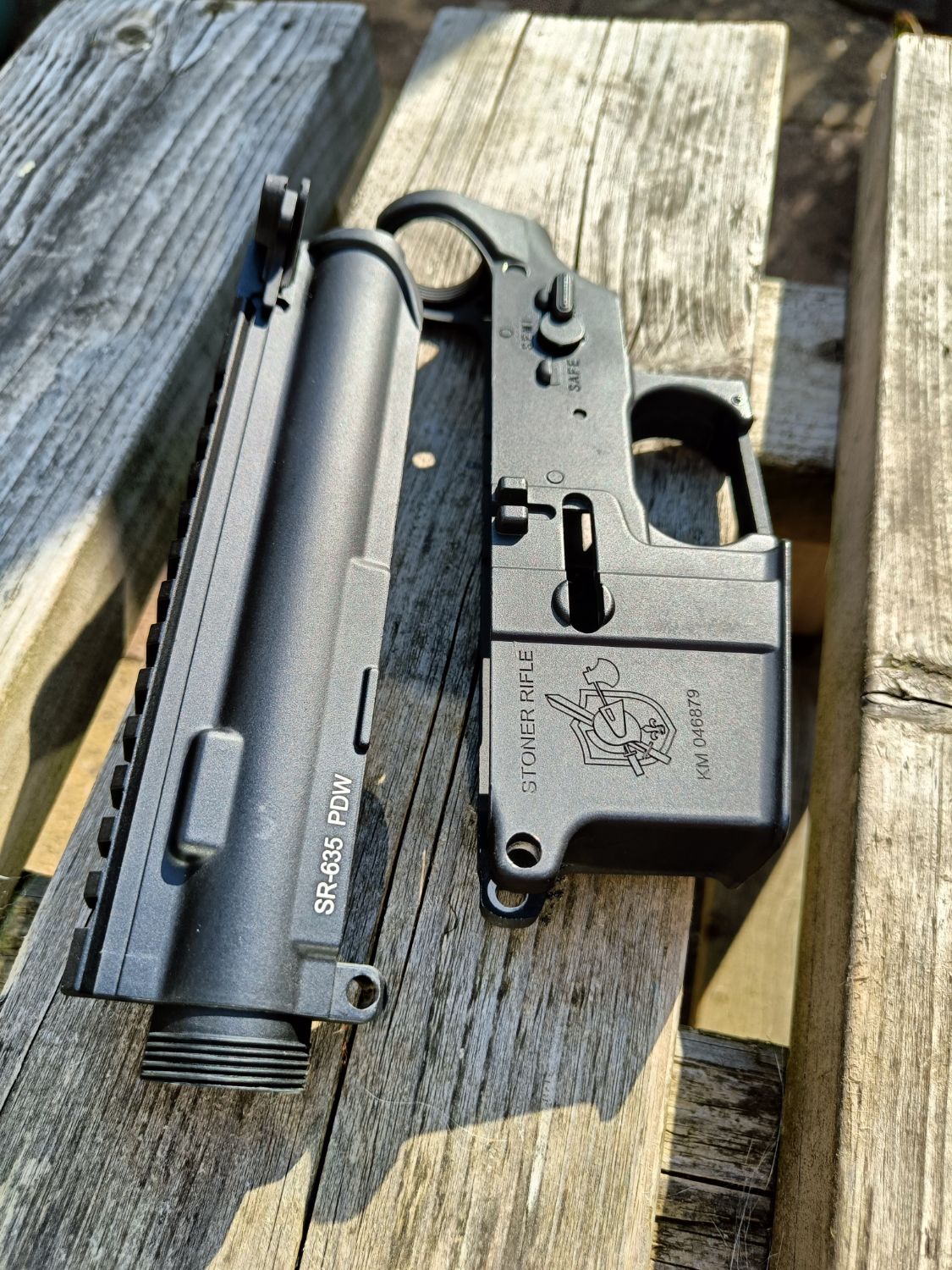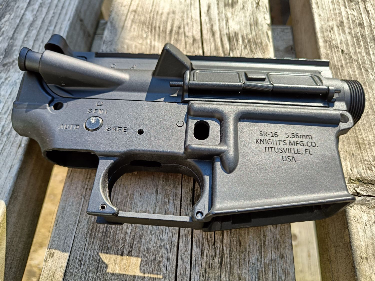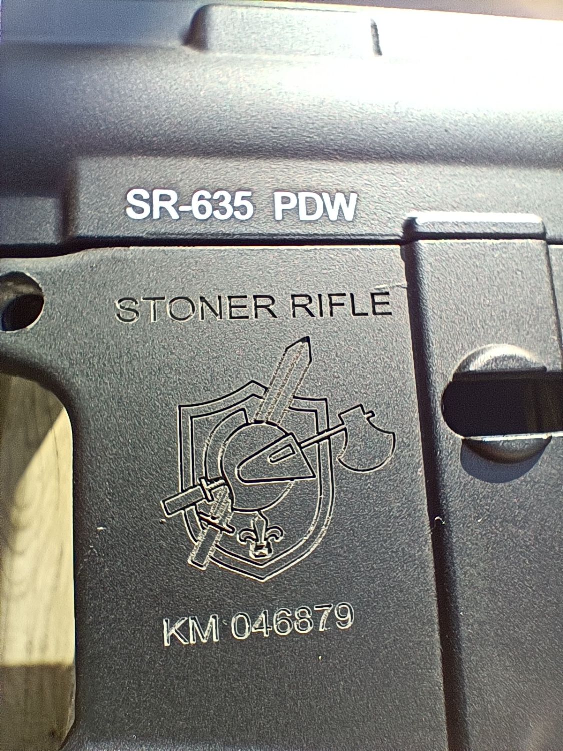As per the photos it's also adorned with nicely engraved Knights Armament Stoner Rifle markings.