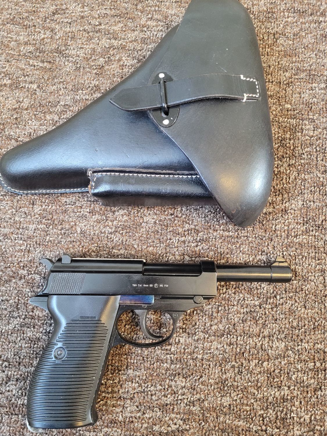 The "blue-ing" that WE put on the mag release and top of the slide has rubbed off over time.