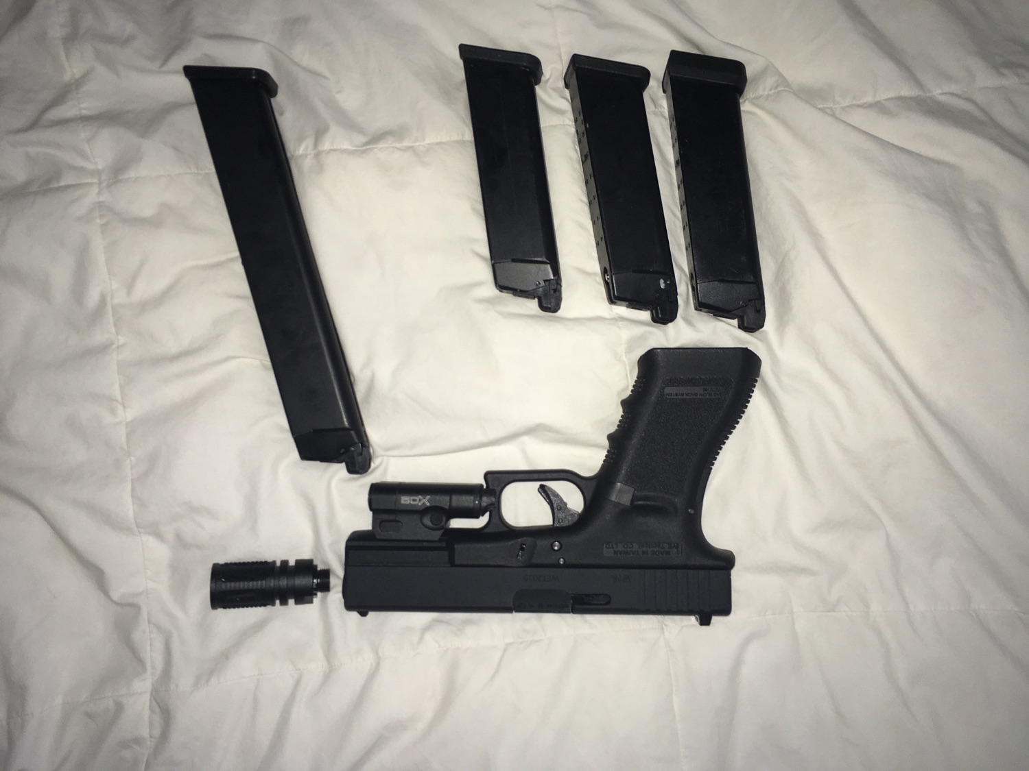 We glock 18 for sale, 3 standard mags and 1 extended, surefire xc2 torch/laser. Any questions let me know