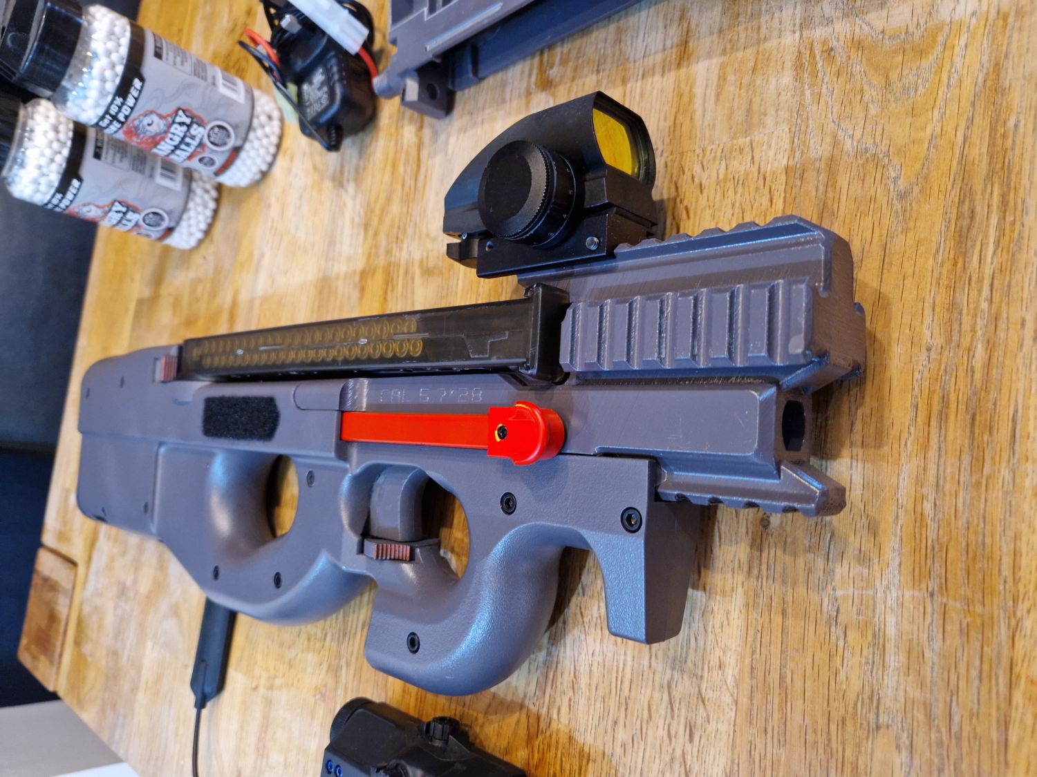 CYMA CM060 AEG P90 in perfect working order. Sprayed in grey and has 3D printed multi-rail barrel.