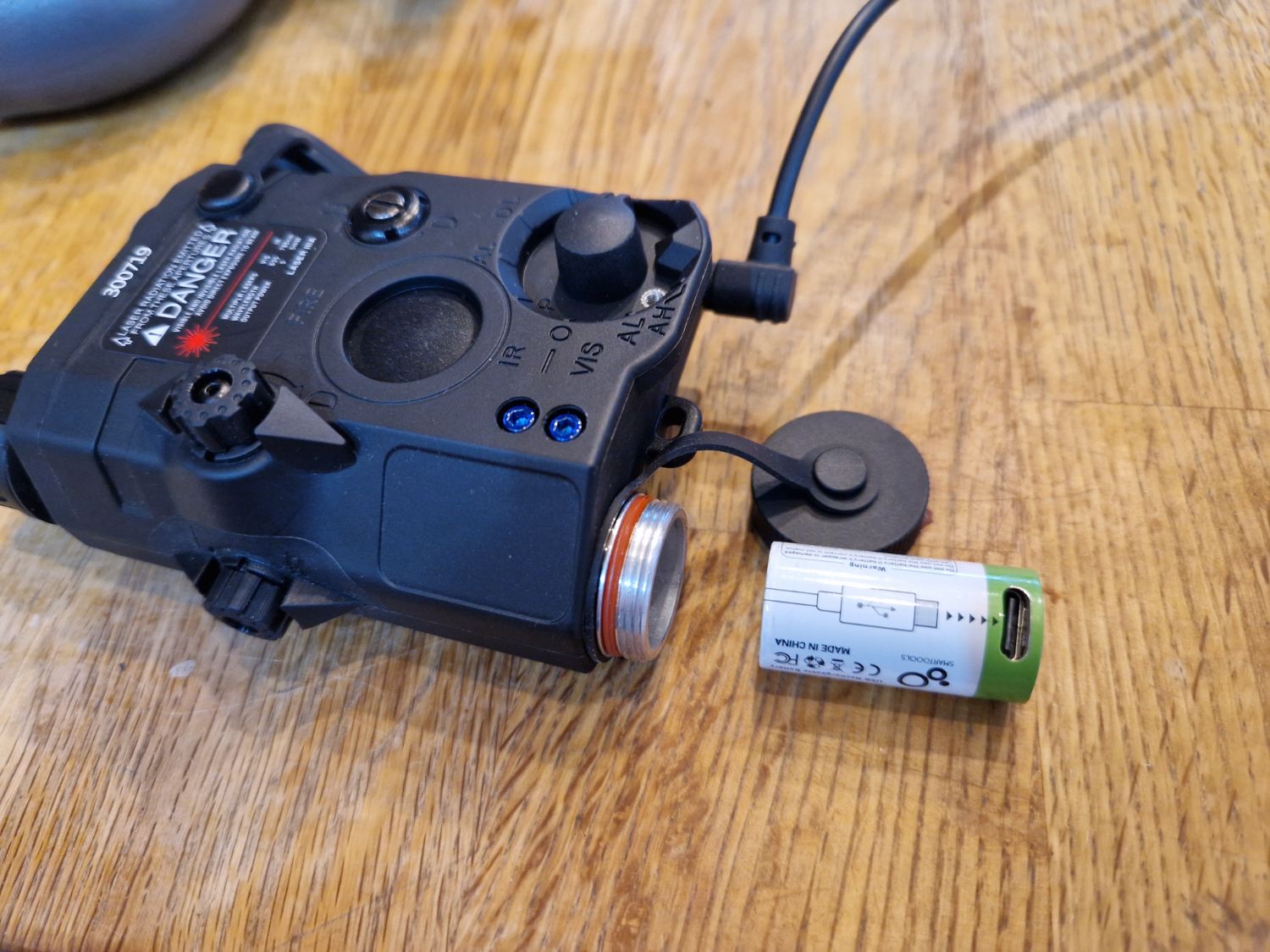 Has LED light and red dot rail unit. The battery for this can be charged with a Type C charger. Also has a Feyachi RDS-25 red dot sight.