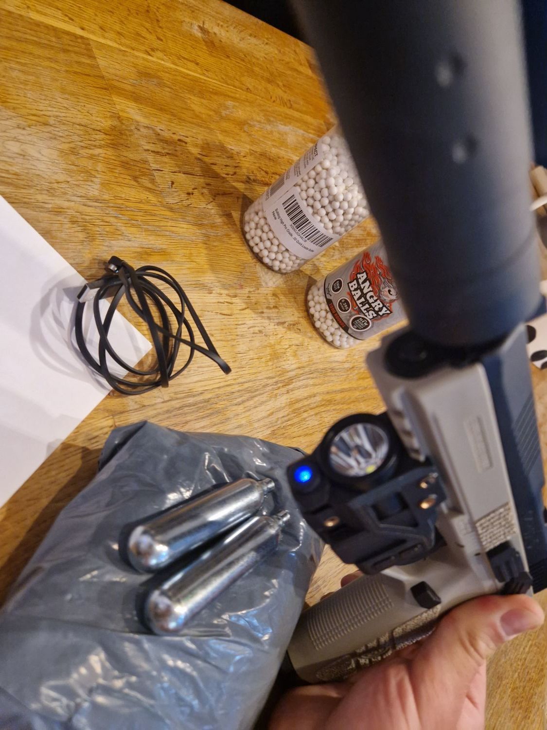 Will come with 22 co2 canisters and approx 3500 0.20 rounds.