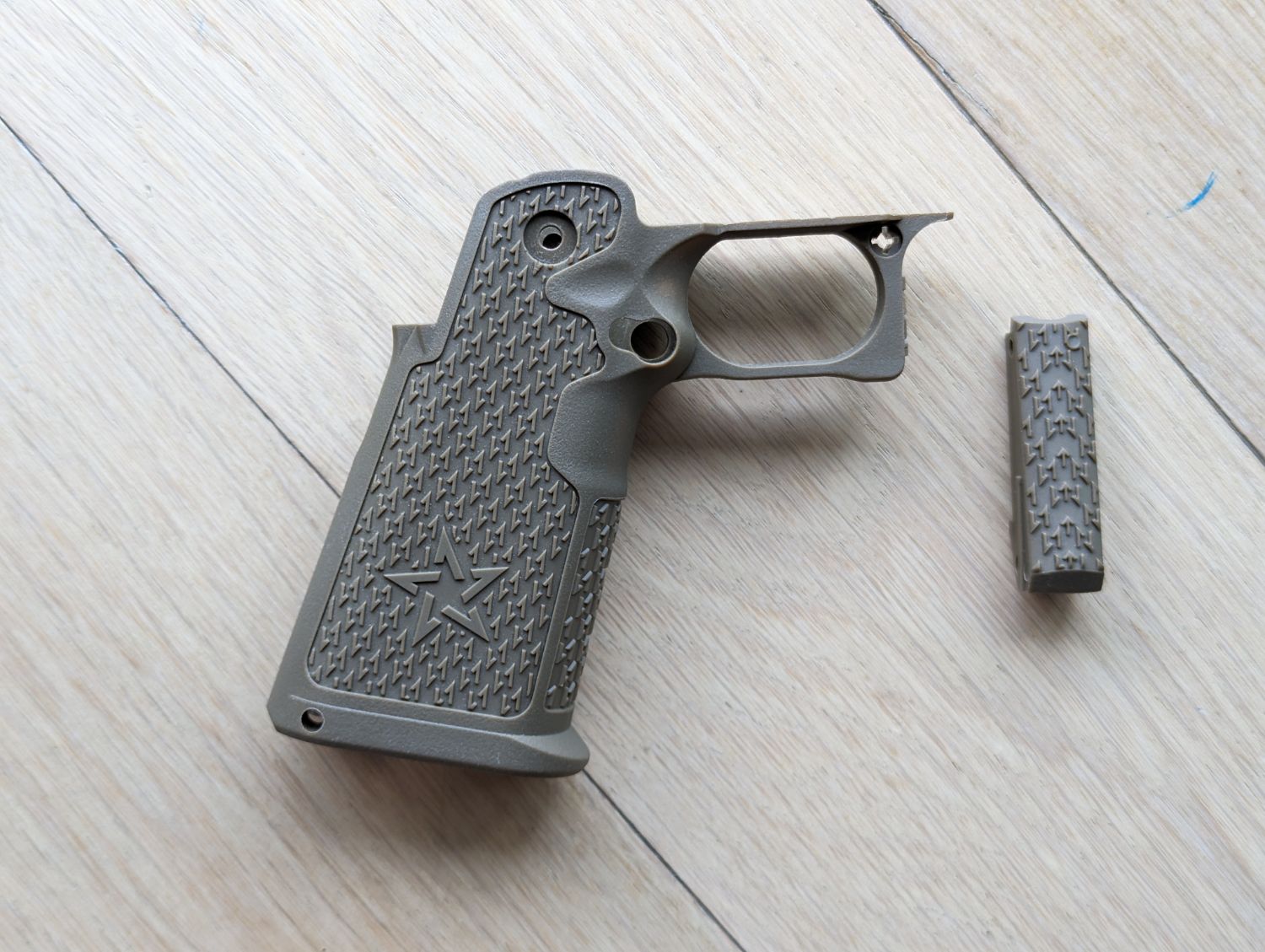 Note: This contains grip and hammer spring housing only, no other parts are included. (Edit* This picture looks like it could be any colour you want it to be if you looked hard enough, but it's the tan one lol)