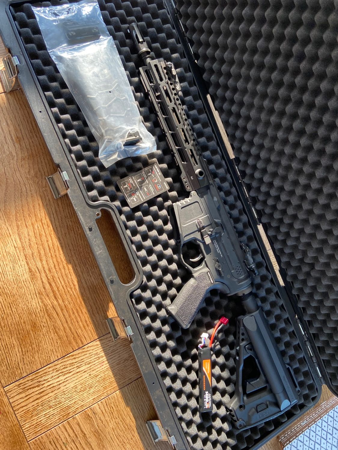 - also includes a lipo battery, set of mlok to picatinny adapters, a manual and 80 round magazine.