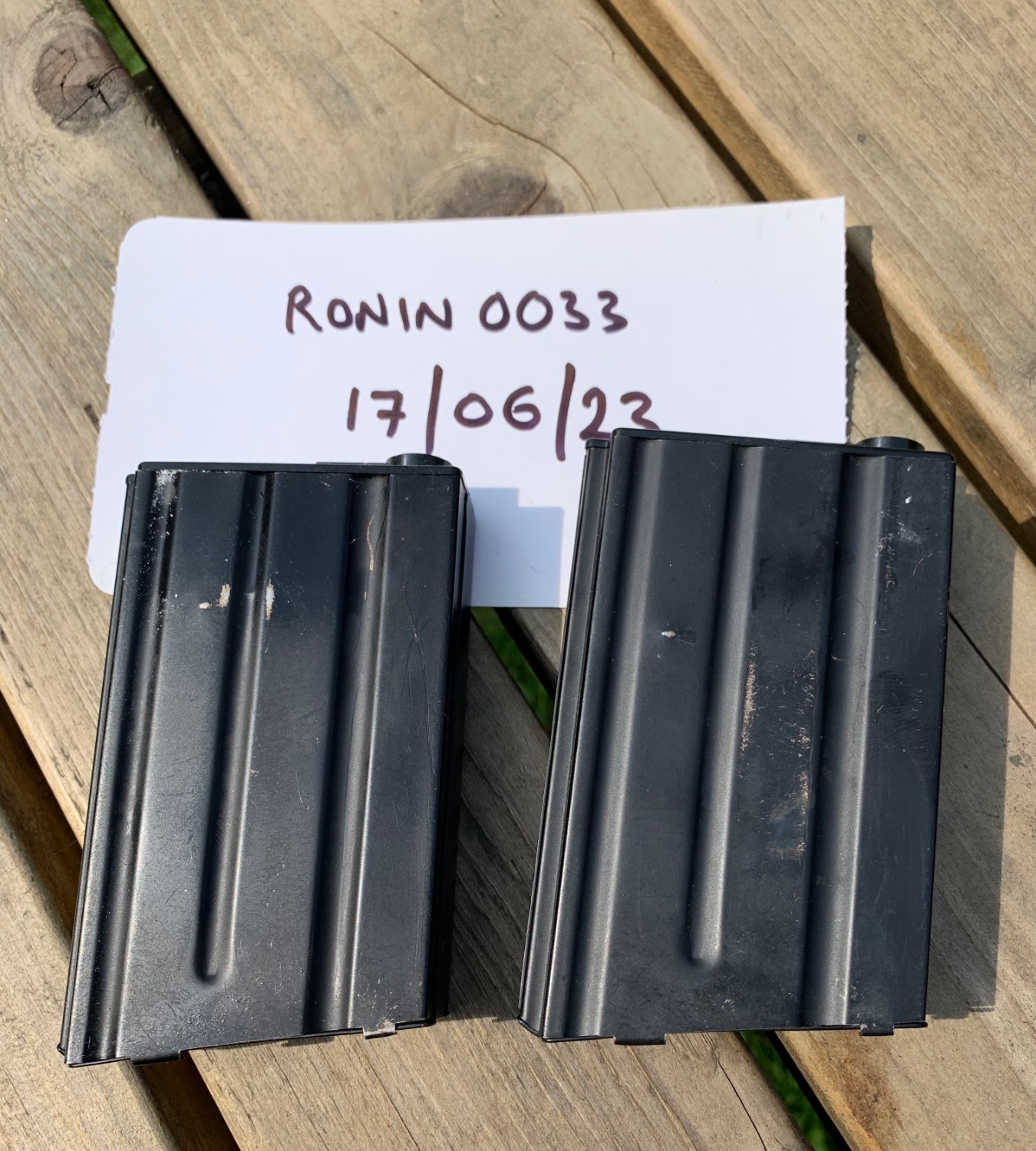 2 metal hi cap mags, one works fine the other has feeding issues that I haven’t been able to solve so is spares or repair.