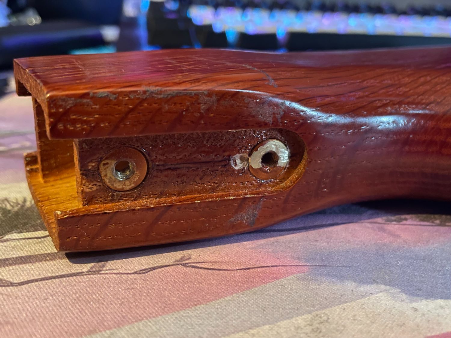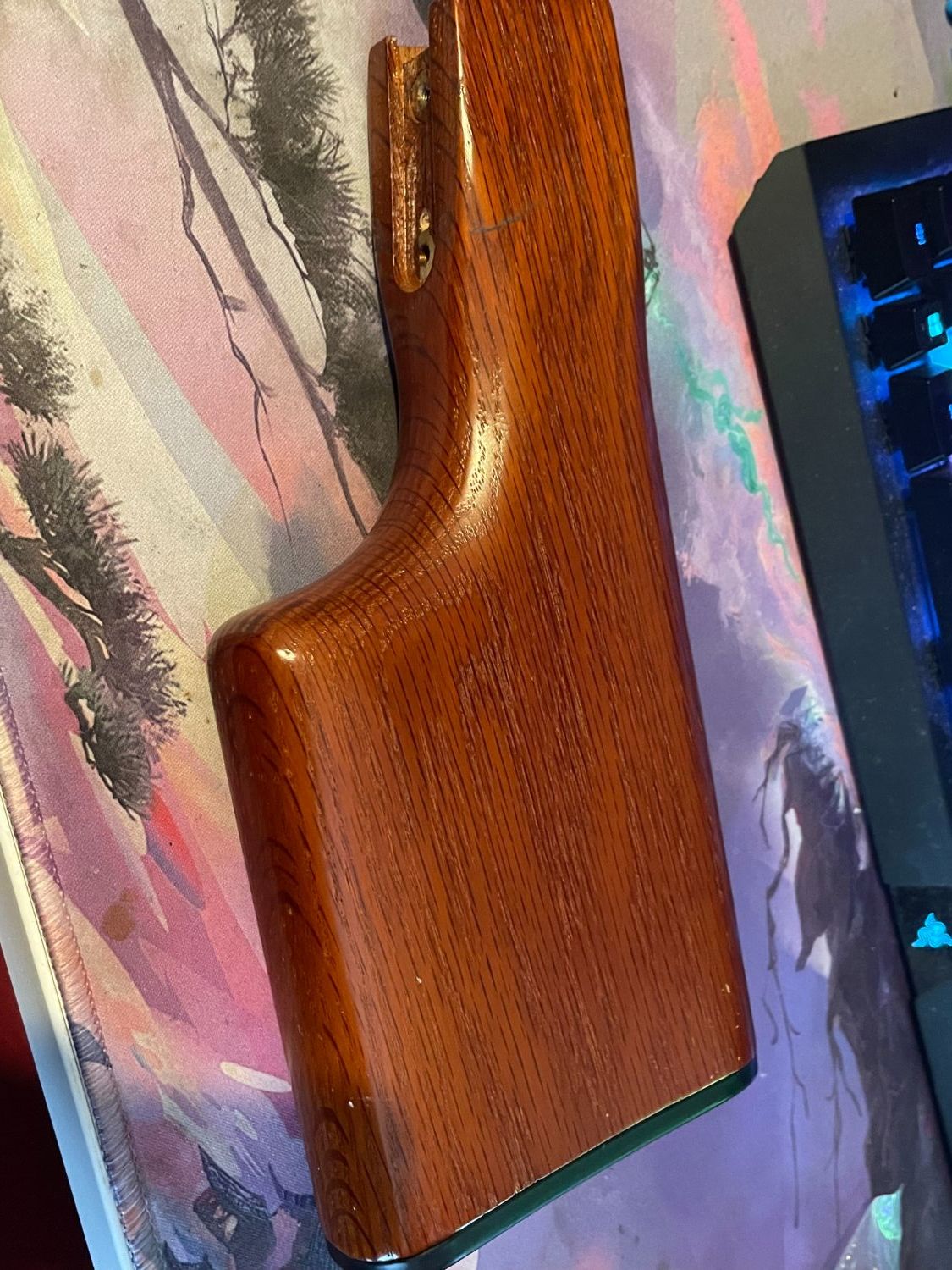 Airsoft wooden RPK solid stock. Is probably CYMA branded, or JG.