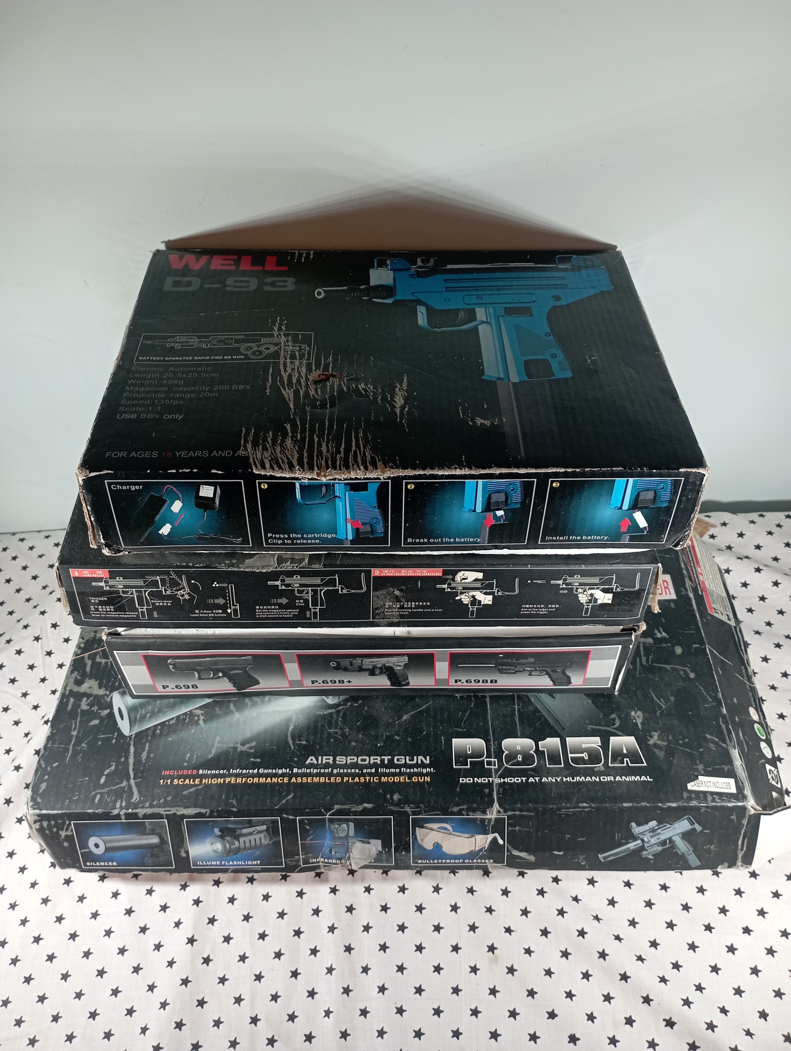 Last used few years ago, just been sitting in a draw since. Boxes are not in great condition. I don't own and BB's to test fire any of them. A charger for the electronic one will be needed (if i find it, i will include it).