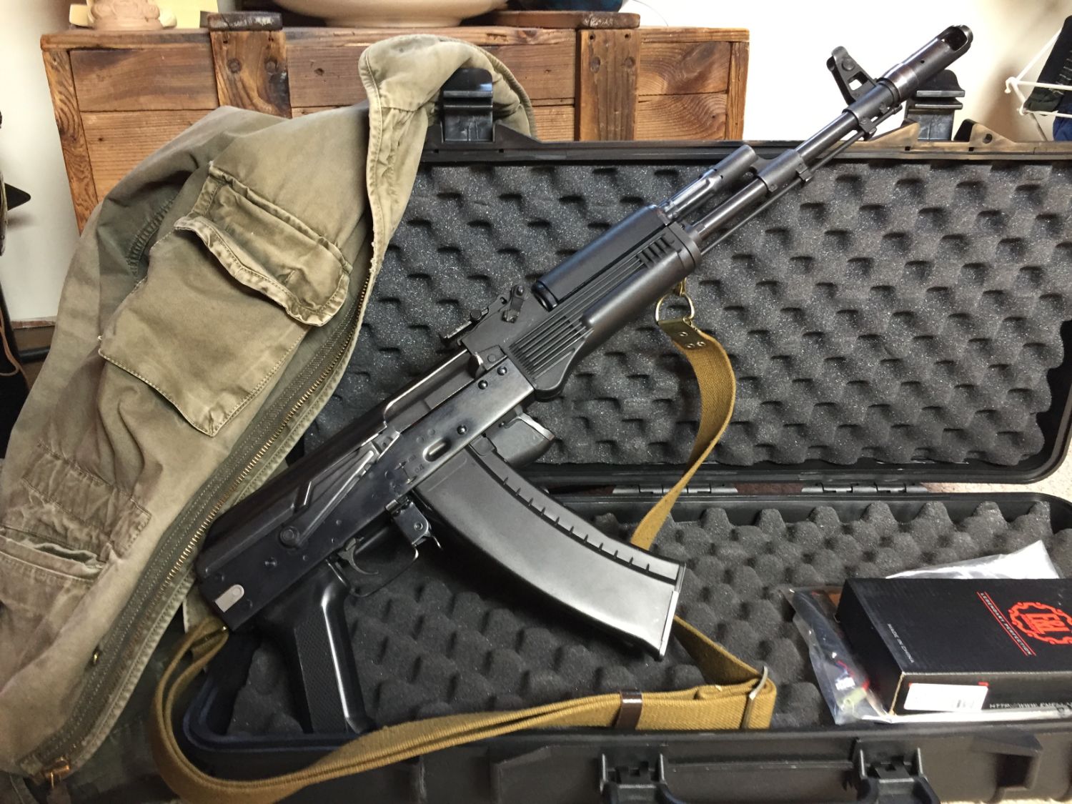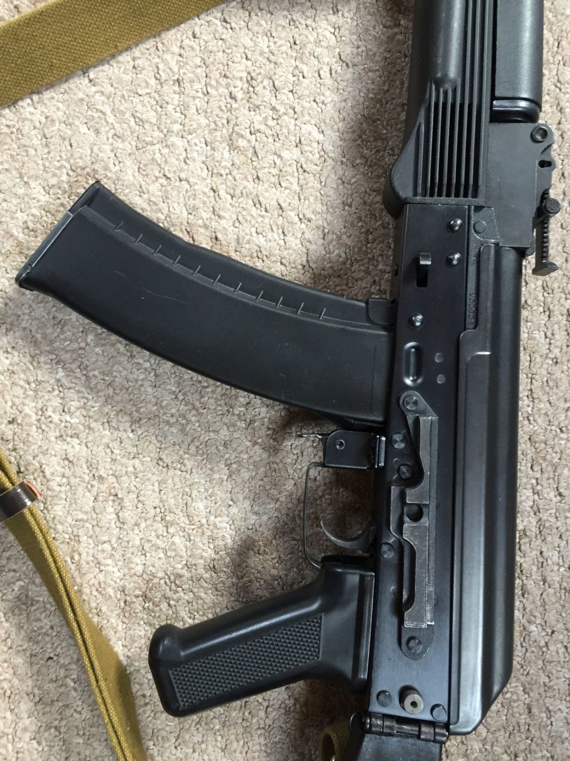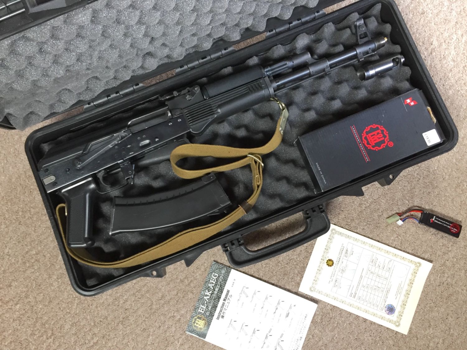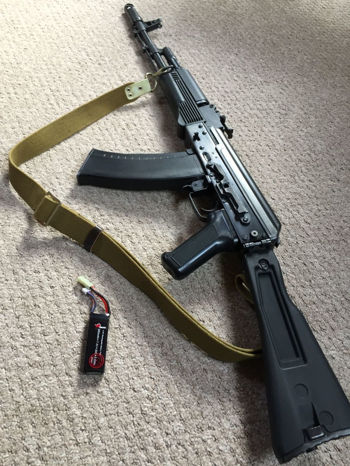 Excellent E&L AK-74 (black) with new heavy-duty carry case, new 120 capacity mid-cap mag, new Russian surplus sling. Bought it for outstanding qualities as a replica (can’t get much better than E&L - full steel, AK factory etc). As a collector not an airsofter, have never fired it! It's clearly been very little used. For extra realism I aged it very lightly, but no knocks, scratches or dings. Battery and owners manual included. Selling reluctantly, storage space issues. Payment by PAYPAL ONLY. £195 + Paypal Fee(to give you assured transaction) +£10 Express48. Or can collect (Nr Ipswich, Suffolk). NOTE: From manual looks like 74MN. *If performance less than it should be, can offer full refund. (Got it from a reputable seller less than year ago. Don't expect problem. I'm Mark64 on Airsofthub - 100% positive reviews.)