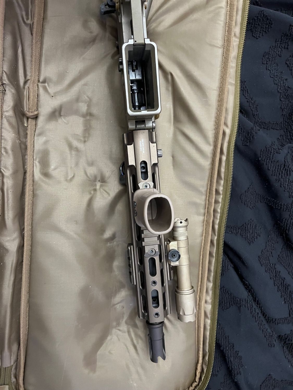 All stock no upgrades, however it will come with the flashlight and grip that’s on there.
