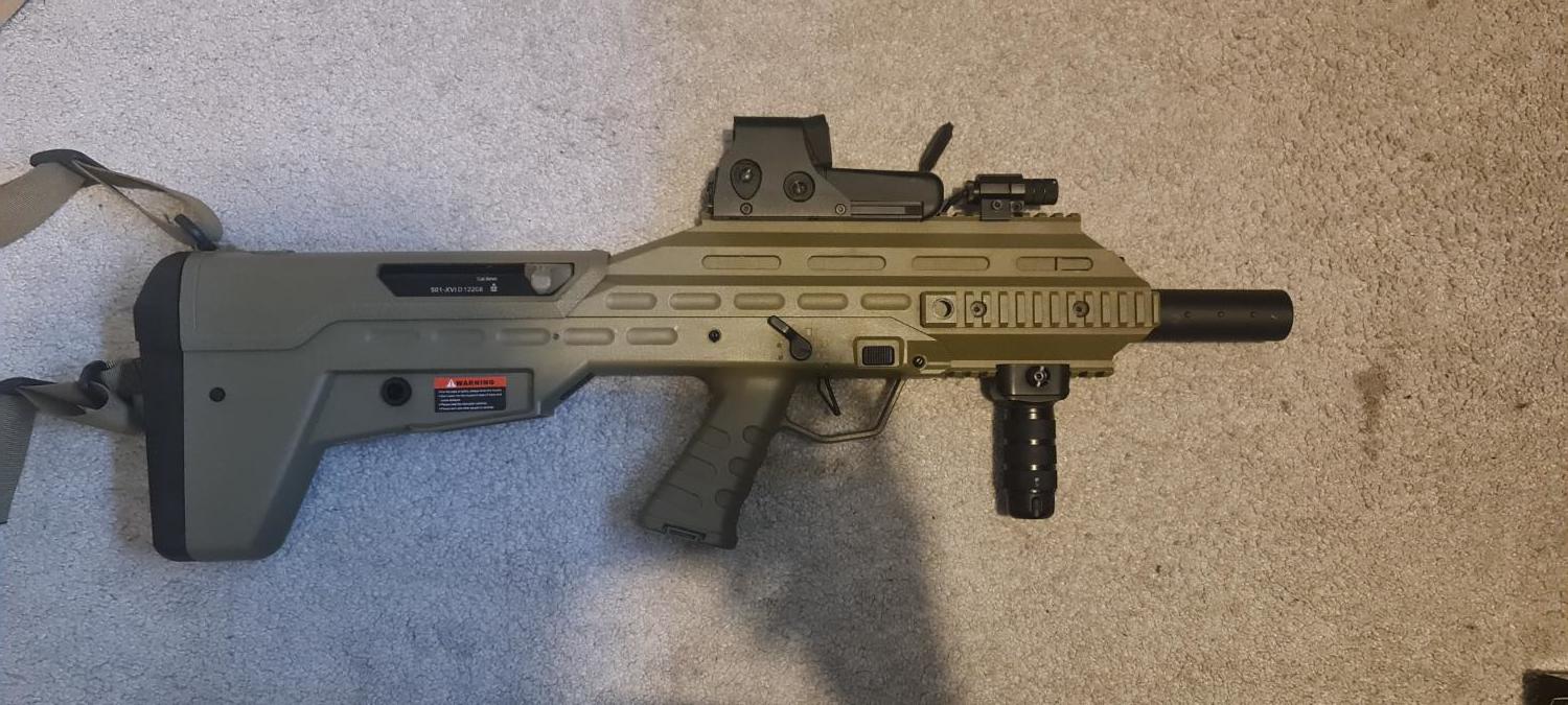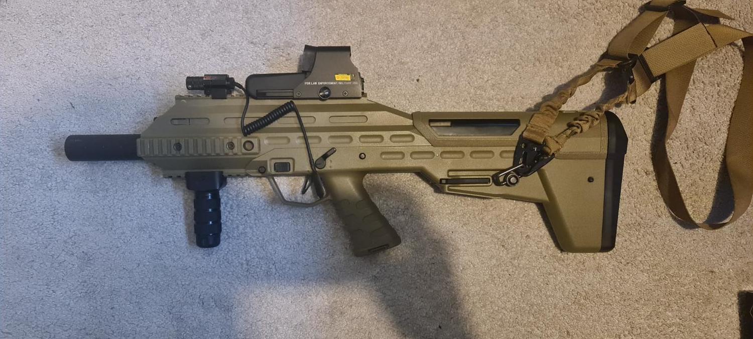 Custom build APS UAR the only remaining parts from the original gun is the shell, rebuilt gearbox, madbull barrel, flat hop, titan gate v3 mosfet, uprated motor, set for 11.1 lipo