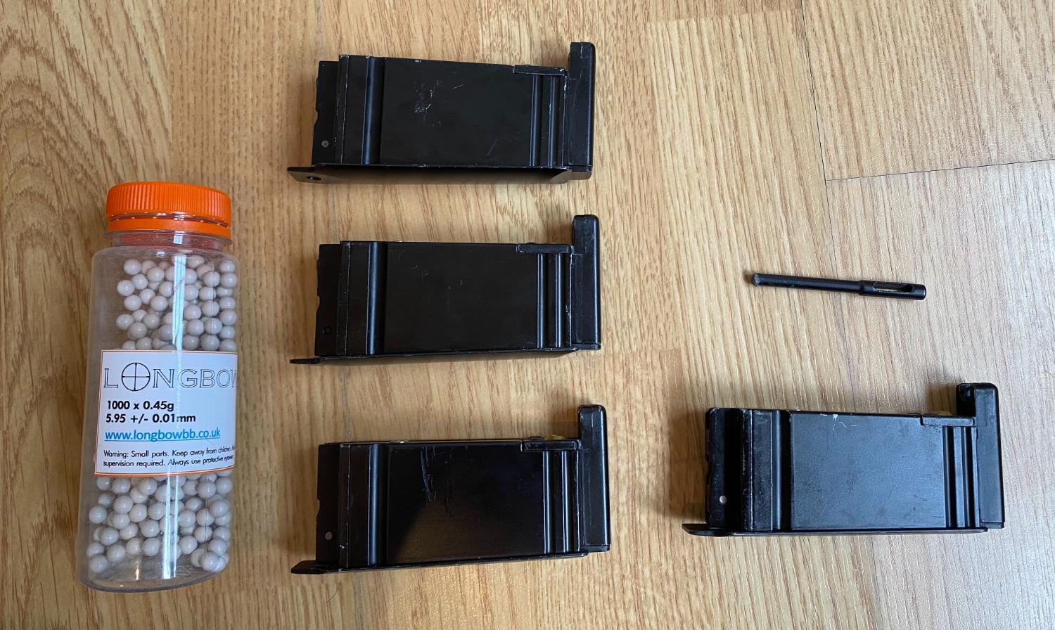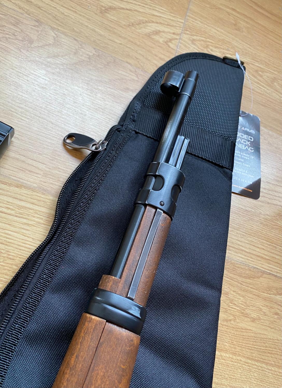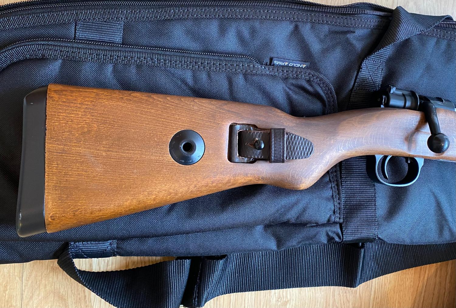 Also included is a replica K98 sling on the rifle, a gun bag for it, and my remaining .45 Longbow Sniper BBs.