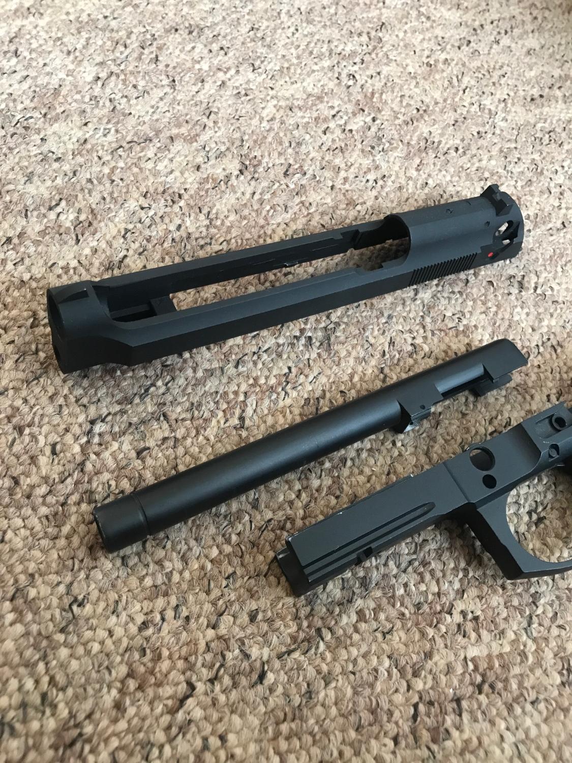 Hello this is my frames for a m92 which are brand new. The slide is larger then usual and comes with the barrel to match and the bottom is off a normal m92 and comes with the rail