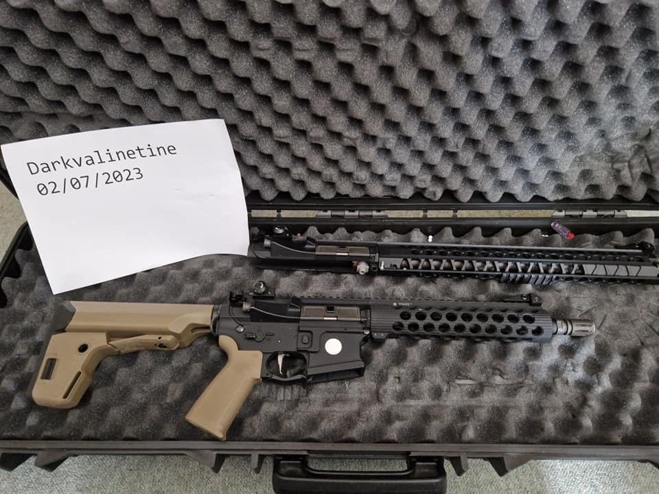 Gun was a G&G base (full metal,) since then it has had full lonex internals fitted (piston, cylinder, cylinder head, piston head, pom nozzle), with pdi 6.03 steel barrels and  maple leaf 60 degree super macron with maple leaf hop nub(a seprate hop unit and barrel for each length,) a max hop fitted in the medium lenght troy upper and an warhead ultra high speed (black) motor.