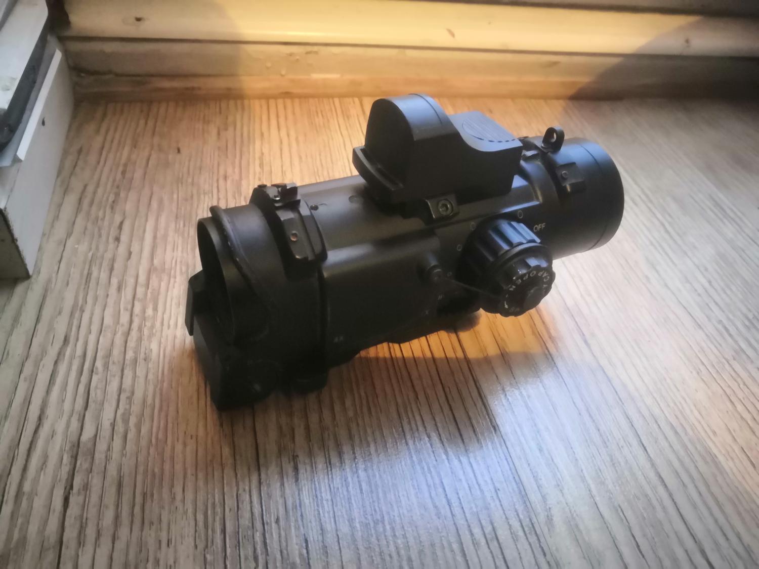 Replica spectre 1-4x scope with additional piggyback red dot sight.