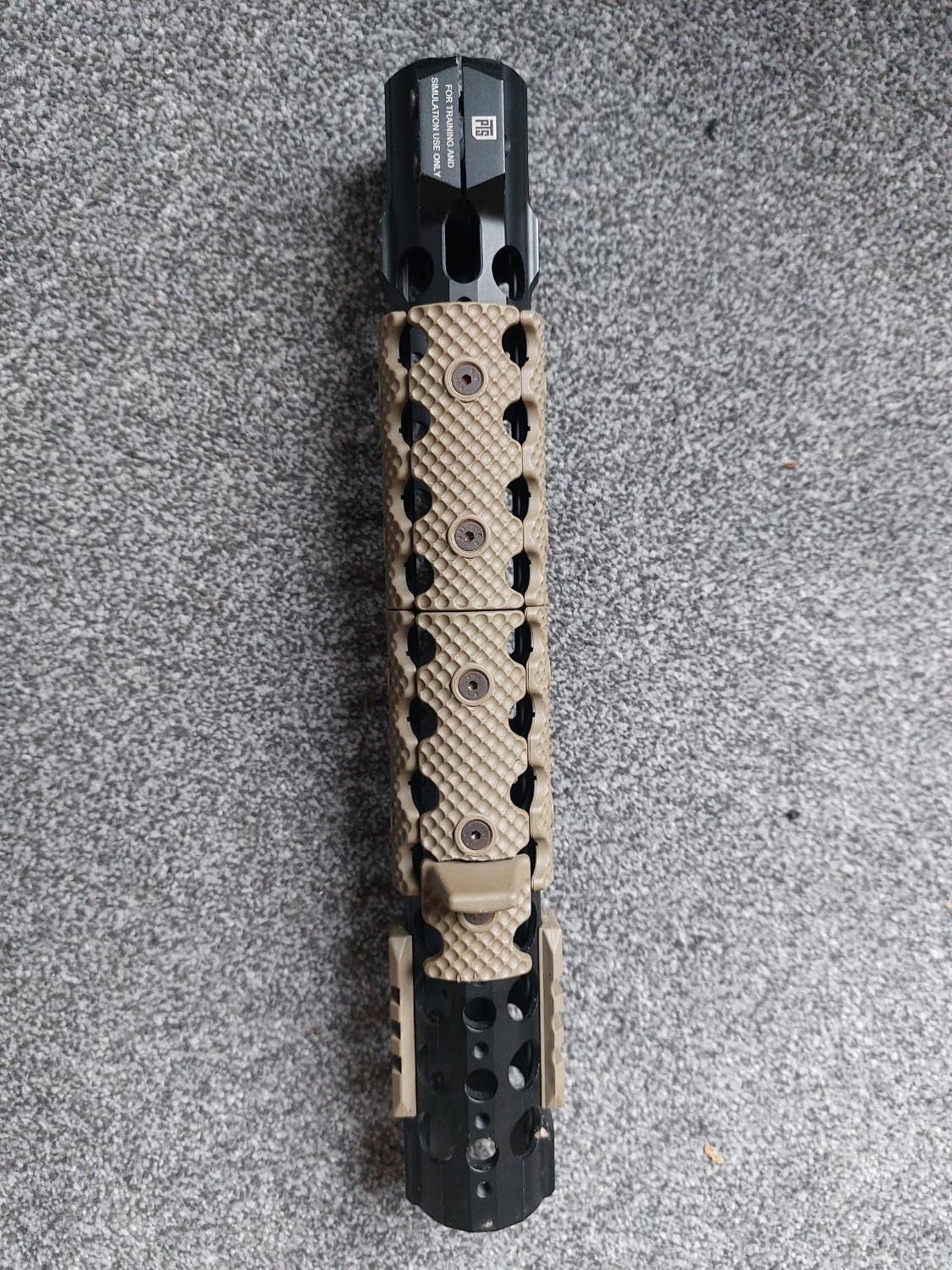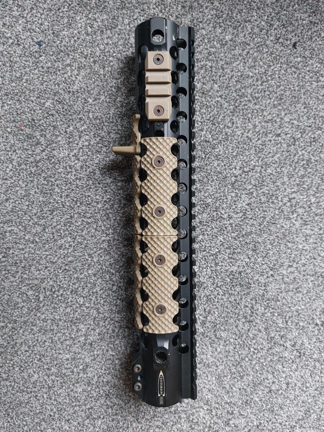 Still in good condition, comes with 6 rail covers, 1 handstop, 2 side rail mounts for attachments.